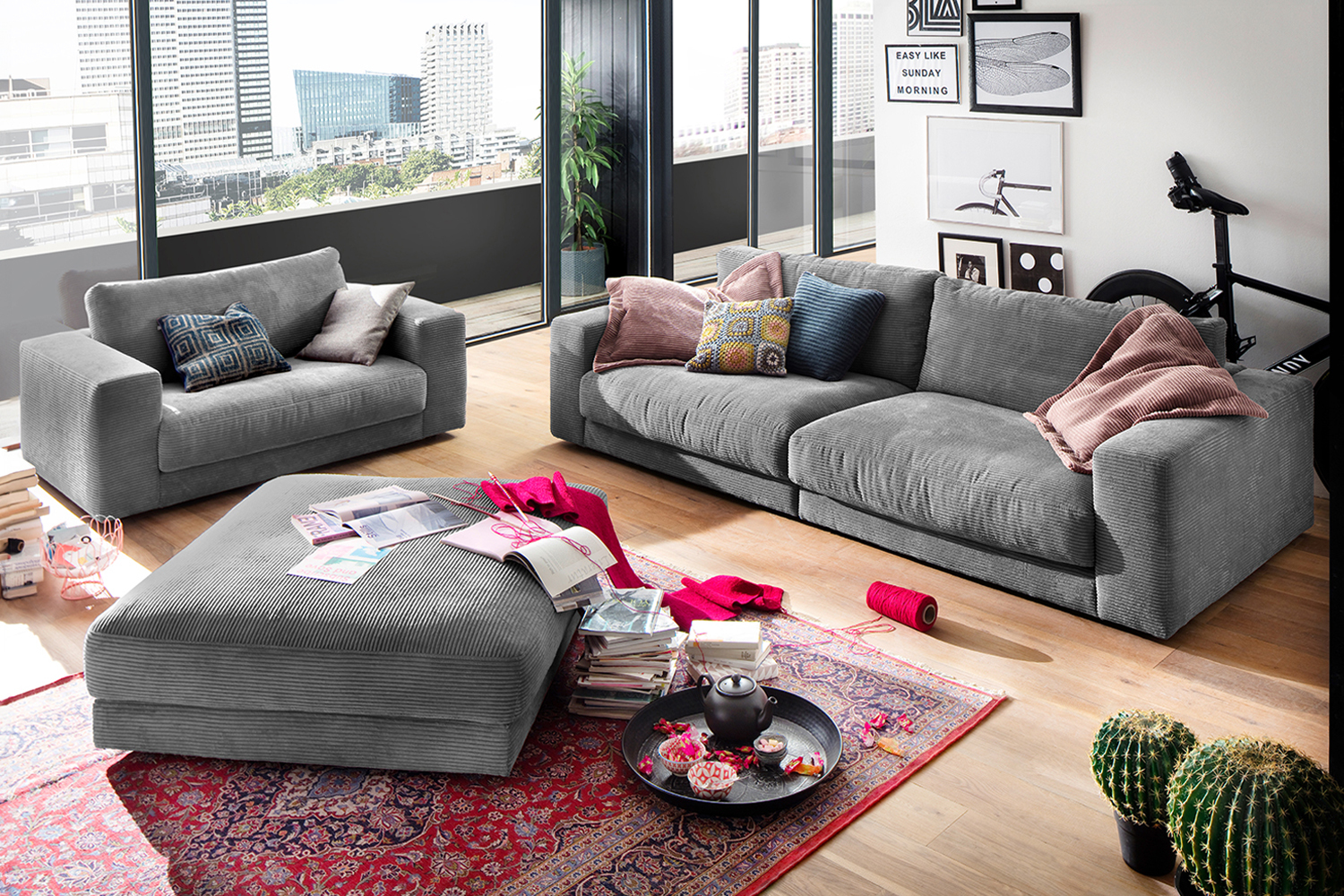 Der KAWOLA Big Hocker MADELINE besticht durch seinen hervorragenden Sitzkomfort, der durch die äußerst legere Polsterung zustande kommt und zum Verweilen und Entspannen einlädt. Seine moderne und urbane Form verleihen dem Polsterhocker sein unverwechselbares Aussehen. Mit seinem zeitlosen Design fügt es sich nahtlos in jede Umgebung ein und macht in jedem Interieur eine gute Figur. Wenn Sie Ihrem Wohnzimmer einen außergewöhnlichen Anstrich verleihen wollen, ist der Big Hocker MADELINE definitiv das Richtige für Sie! Der Hocker ist außerdem die perfekte Ergänzung zu den Cord-Sofas aus der Serie MADELINE.
