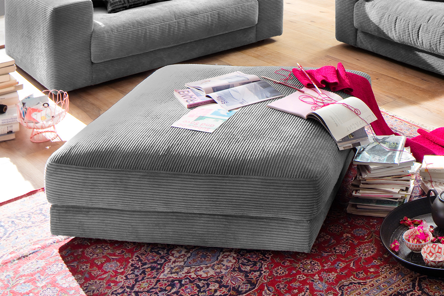 Produktinformationen "B-Ware KAWOLA Big Hocker MADELINE Polsterhocker Cord grau"