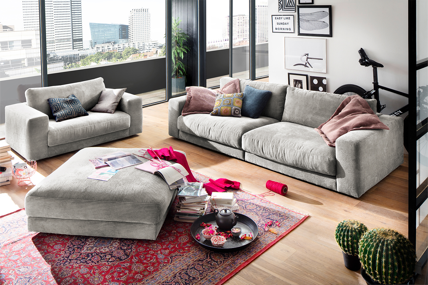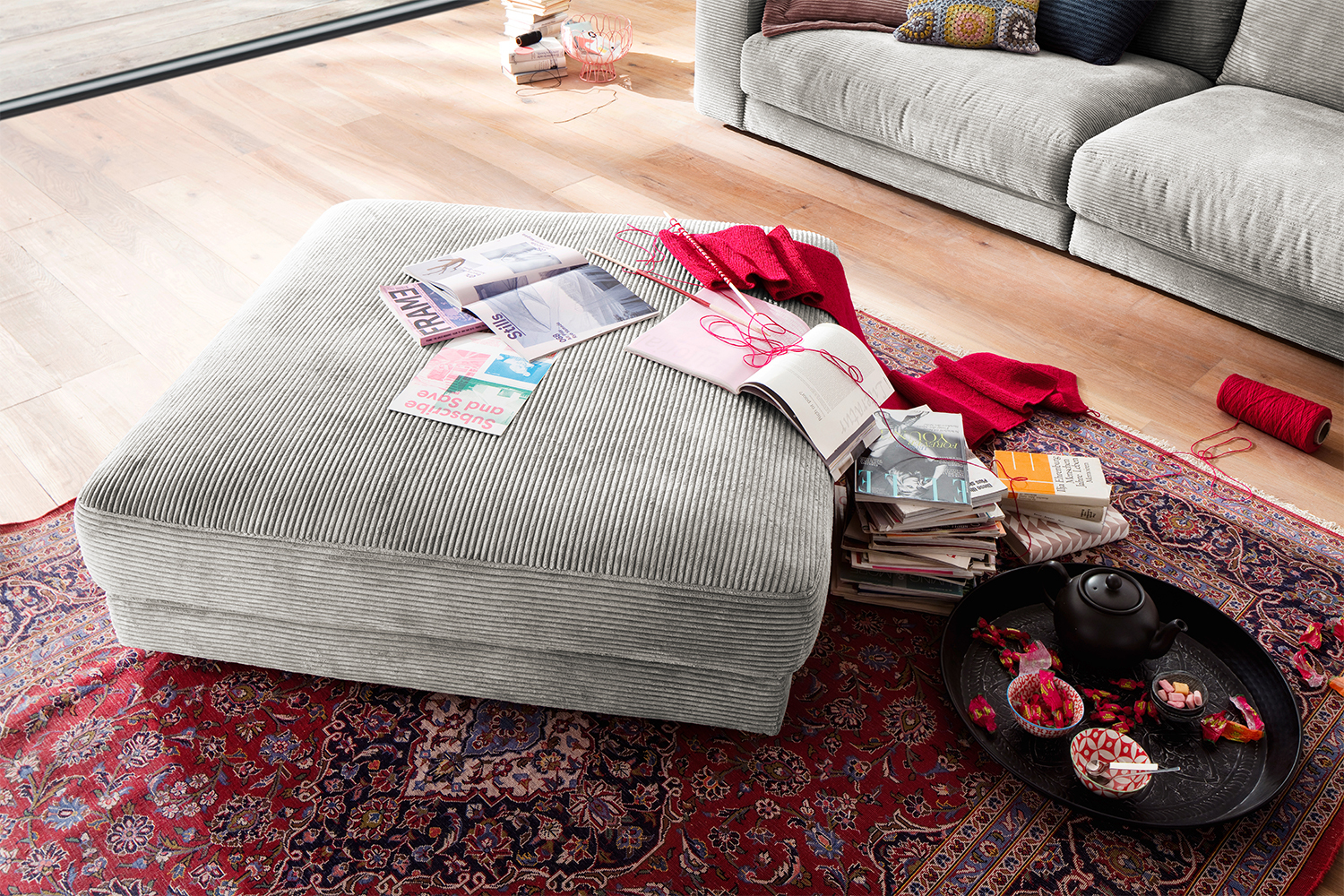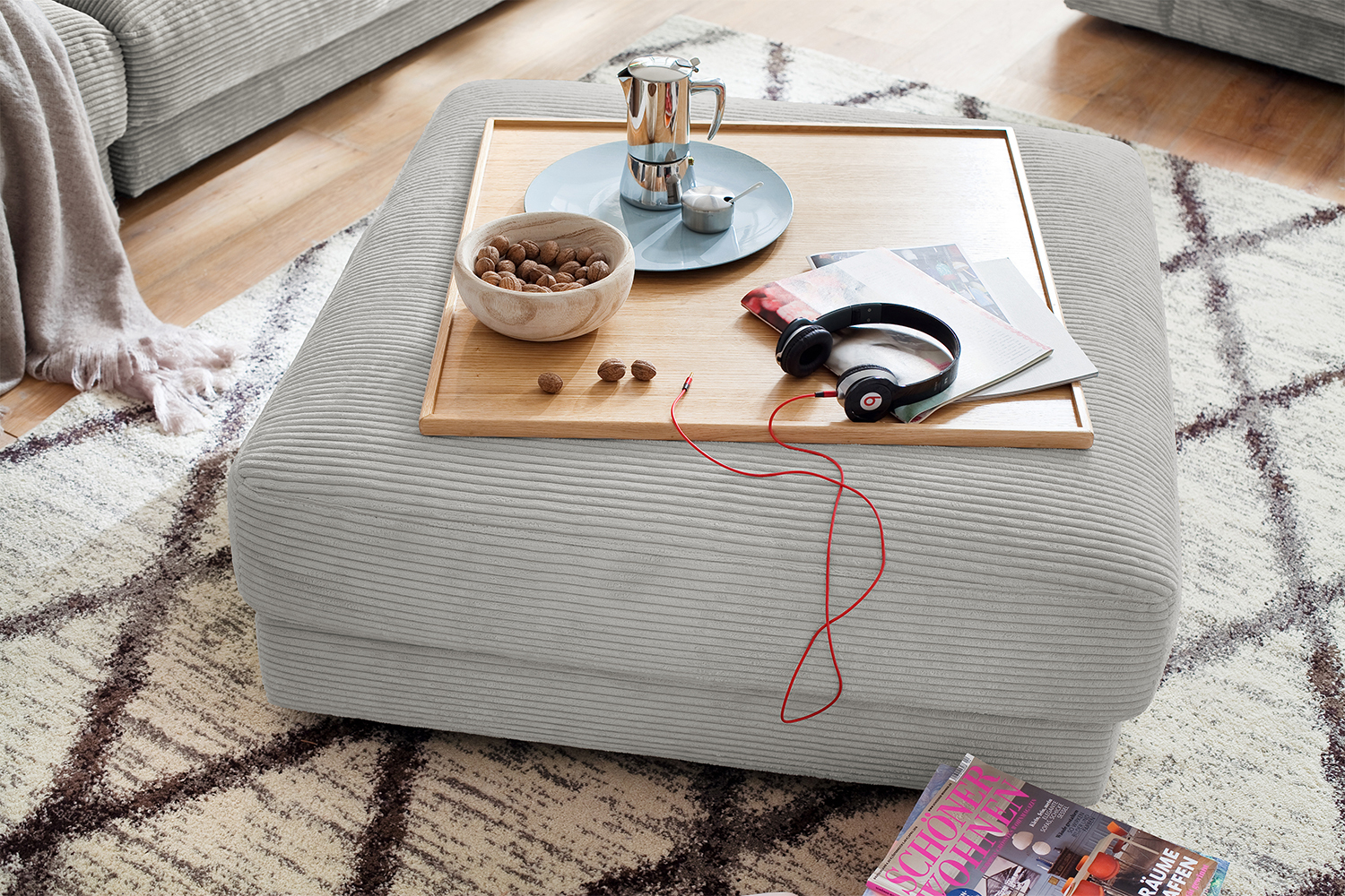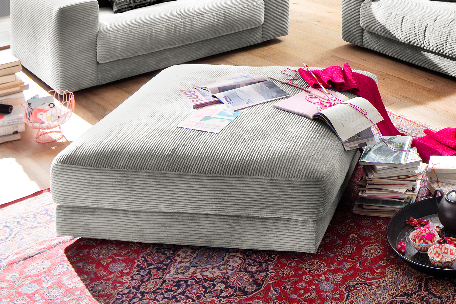 Der KAWOLA Big Hocker MADELINE besticht durch seinen hervorragenden Sitzkomfort, der durch die äußerst legere Polsterung zustande kommt und zum Verweilen und Entspannen einlädt. Seine moderne und urbane Form verleihen dem Polsterhocker sein unverwechselbares Aussehen. Mit seinem zeitlosen Design fügt es sich nahtlos in jede Umgebung ein und macht in jedem Interieur eine gute Figur. Wenn Sie Ihrem Wohnzimmer einen außergewöhnlichen Anstrich verleihen wollen, ist der Big Hocker MADELINE definitiv das Richtige für Sie! Der Hocker ist außerdem die perfekte Ergänzung zu den Cord-Sofas aus der Serie MADELINE.-
