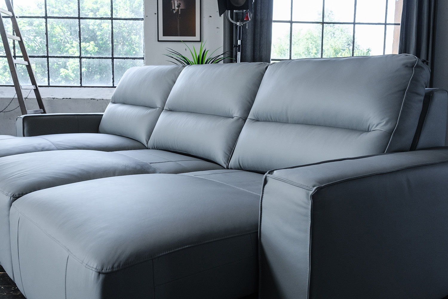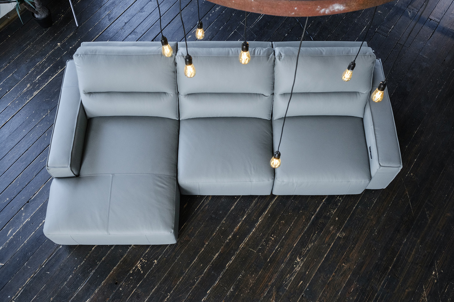 Das Big Sofa setzt sich aus einem großzügigen Longchair und zwei weniger tiefen Sitzelementen zusammen. Die beiden Seitenelemente sind mit einem innovativen motorischen Sitzvorzug ausgestattet, der es ermöglicht, die Sitzfläche bis zum vorderen Ende des Longchairs auszufahren – für individuellen Sitzgenuss nach Ihren Wünschen.