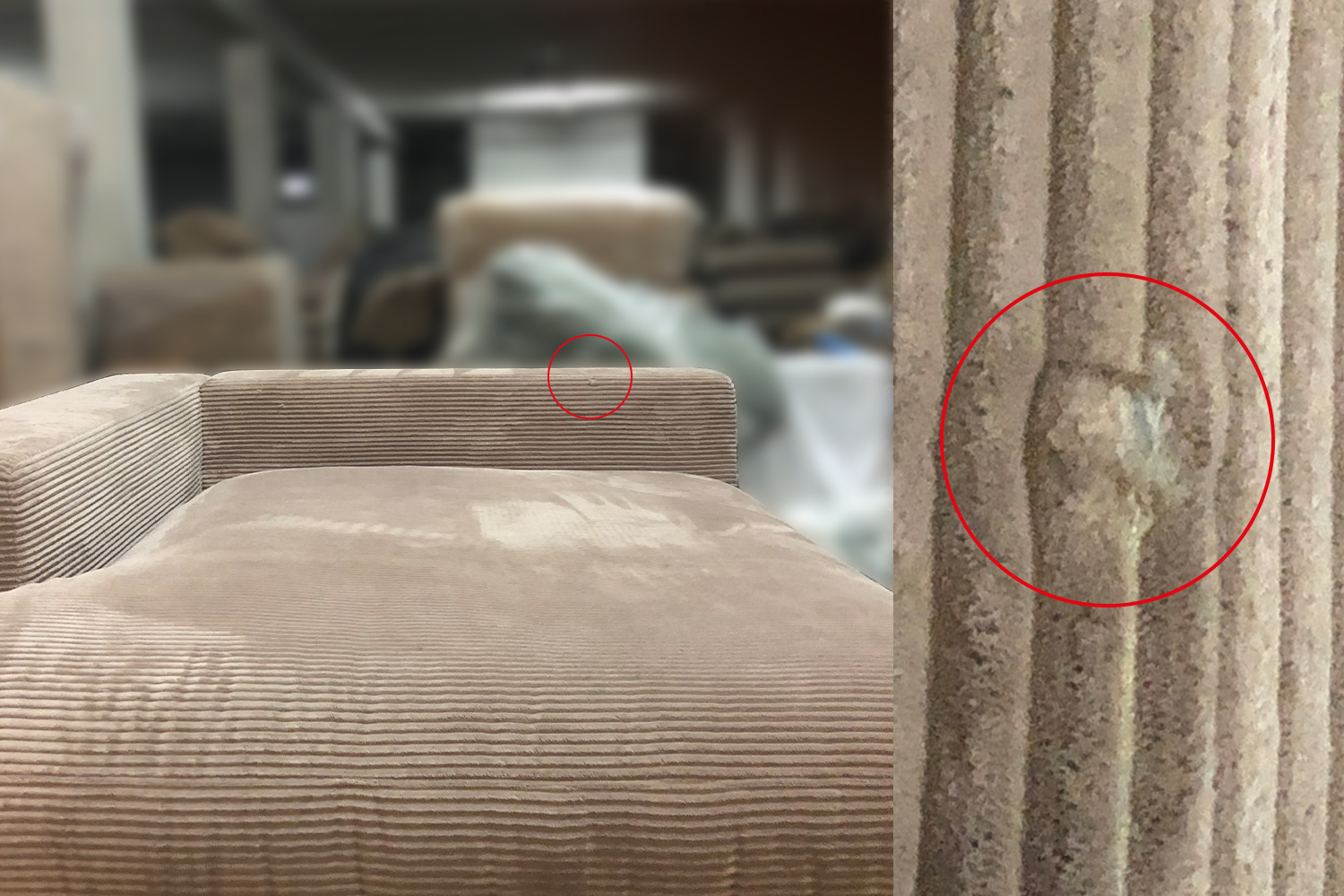 • Sitzkomfort: weicher und legerer Polsteraufbau; die Polsterung passt sich der Körperform an; Sitzabdrücke sowie Wellenbildung der Bezüge sind warentypisch