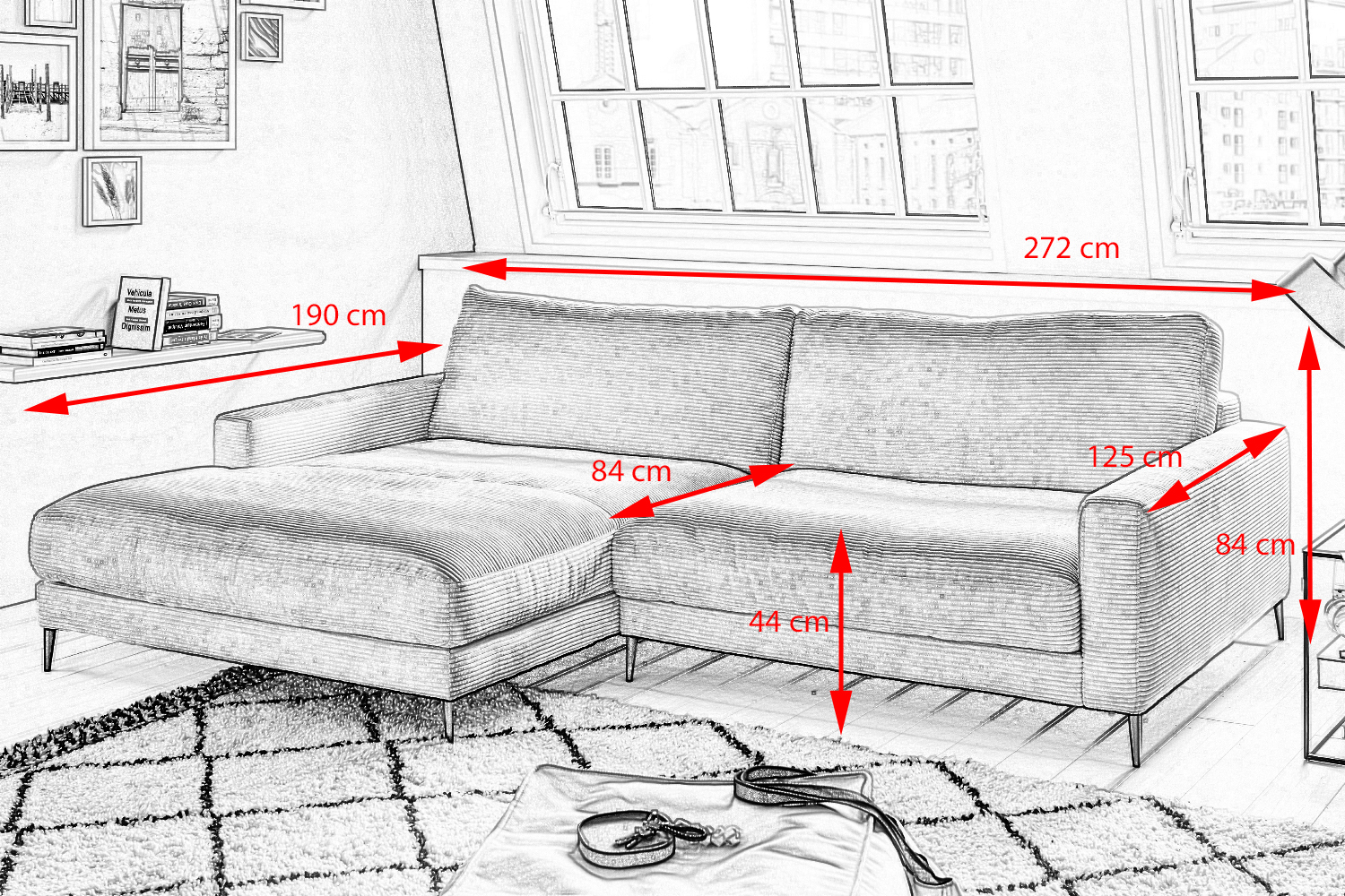 "Es handelt sich hier um B-Ware, die wir zu einem reduzierten Preis anbieten. Die spezifischen Mängel dieses Artikels sind bei den Produktbildern direkt nach dem Hauptbild genau dokumentiert und werden zusätzlich noch in den ""Produktdetails"" (s.u.) beschrieben." Das KAWOLA Ecksofa CARA verbindet klassisches Design mit moderner Sachlichkeit und fügt sich nahtlos in jedes Interieur ein. Seine weichen Formen und der Bezug aus angesagtem Cord-Stoff verleihen dem Sofa eine zeitlose Eleganz. Die Polsterung passt sich der Körperform an; Sitzabdrücke sowie Wellenbildung der Bezüge sind warentypisch. Der Sitz besteht aus einer Unterfederung mit dauerelastischen Stahl-Wellenfedern und einer oberseitigen Abdeckung sowie losen Sitzkissen aus PUR-Schaum. Sitz und Rücken sind abgedeckt mit einem Inlett, welches befüllt ist mit hochwertigen Füllstoffen, die eine Beimischung von Federn enthalten. Um ein Stauchen des Füllmaterials zu verhindern, sollten die Rückenkissen nach Gebrauch aufgeschüttelt werden. Egal zu welcher Gelegenheit - auf dem Sofa CARA findet jeder ein Plätzchen zum Entspannen!