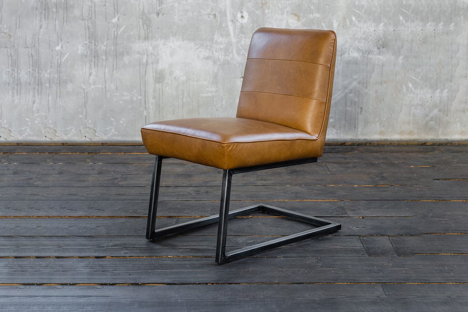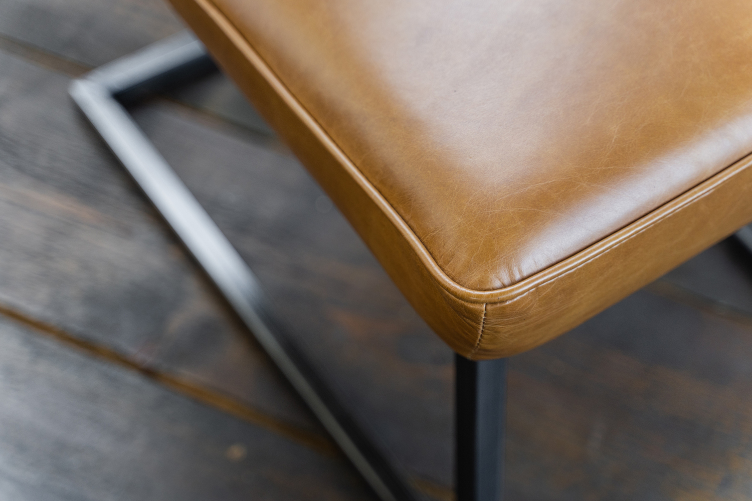 Der Esszimmerstuhl SALI von KAWOLA vereint industrie Chic mit modernem Design und ist zudem extrem bequem. Die Sitzfläche ist weich gepolstert und mit angenehmem, hochwertigem Vintage-Leder bezogen. Durch die Freischwingerfüße ist der Stuhl noch komfortabler und eignet sich somit auch zum längeren Sitzen. Ob nun am Esszimmertisch mit Freunden, Spieleabend mit der Familie, im Wartebereich oder im Konferenzraum, SALI ist vielseitig einsetzbar und wird in jedem Raum zum besonderem Blickfang. Vintage-Leder ist im Griff sehr warm und weich, zudem besitzt es vollständige Atmungsaktivität. Die Offenporigkeit macht beim Berühren des Leders auch einen Temperaturausgleich möglich, sodass sich das Leder schön warm anfühlt. Durch das Aufbringen einer Wachsschicht oder eines sogenannten Effektfinish wird dem Leder ein antiker Look verliehen. Farbunterschiede und sichtbare Naturmerkmale wie z.B. Mückenstiche und Narben zeigen die Echtheit des Leders. Aufgrund der Offenporigkeit entwickelt dieses Leder beim Gebrauch seinen individuellen Charakter.
