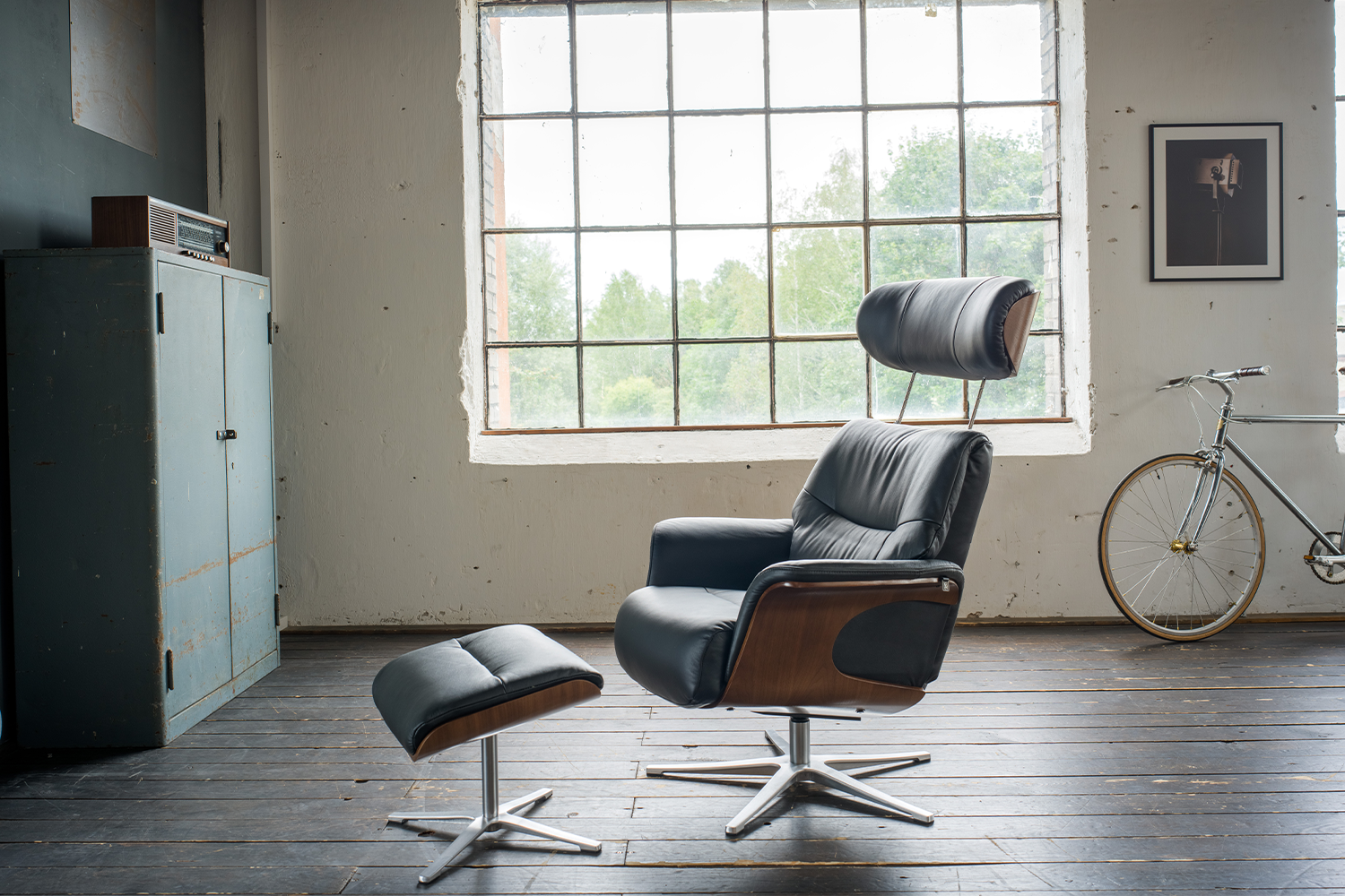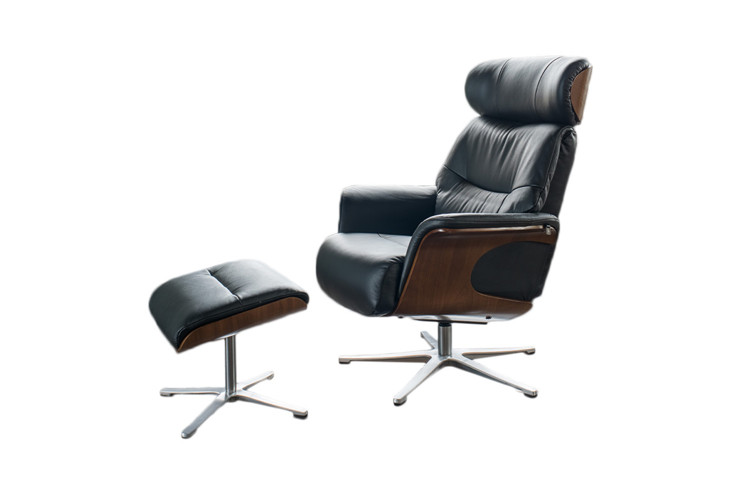 Produktinformationen "B-Ware KAWOLA Relaxsessel TOSAR drehbar Leder schwarz mit Hocker"