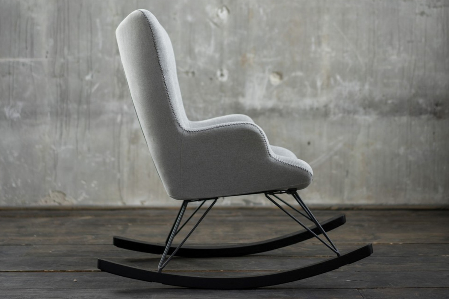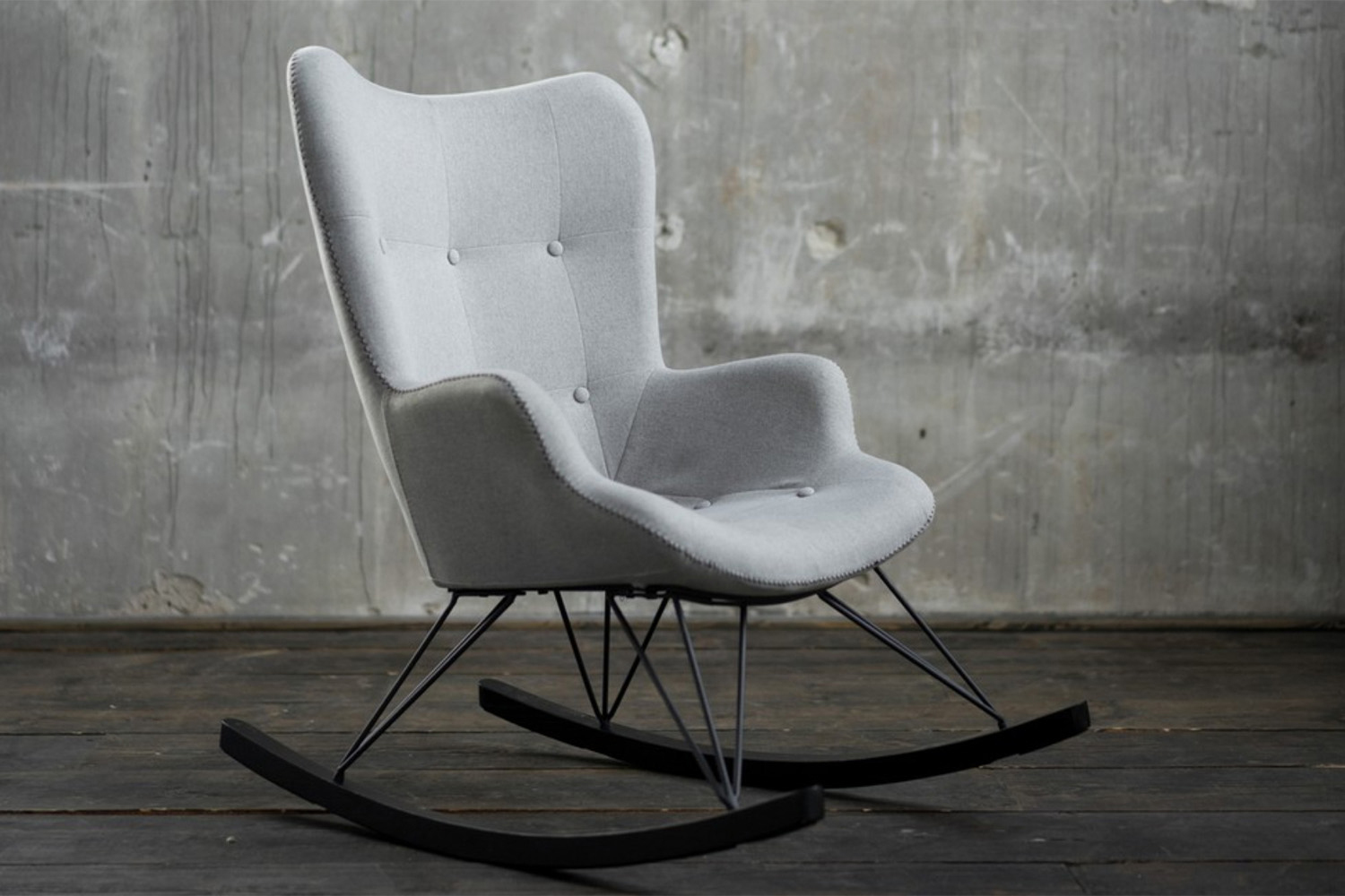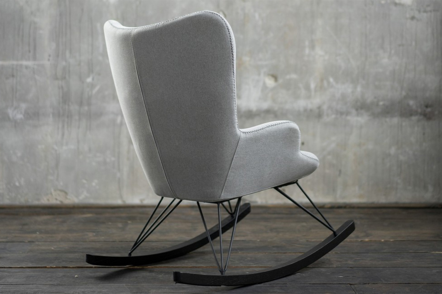 Hier erscheint der Schaukelstuhl in einem modernen Design und vereint Bequemlichkeit mit modernem Stilbewusstsein.