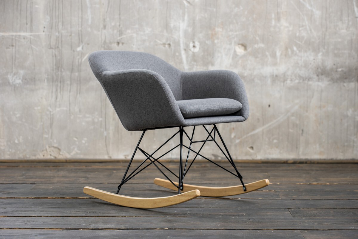 B-Ware KAWOLA Schaukelstuhl Stella Schaukelsessel Esszimmerstuhl Stoff grau