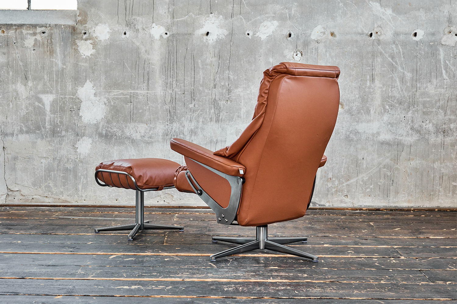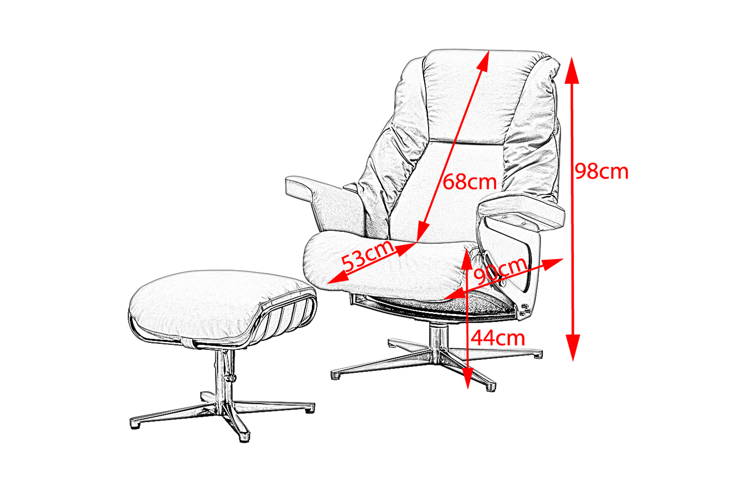 Die clevere Relaxfunktion ermöglicht durch manuelles Neigen der Rückenlehne maximale Entspannung. Ein passender Fußhocker hebt die Füße sanft an, für eine wohlverdiente Auszeit.