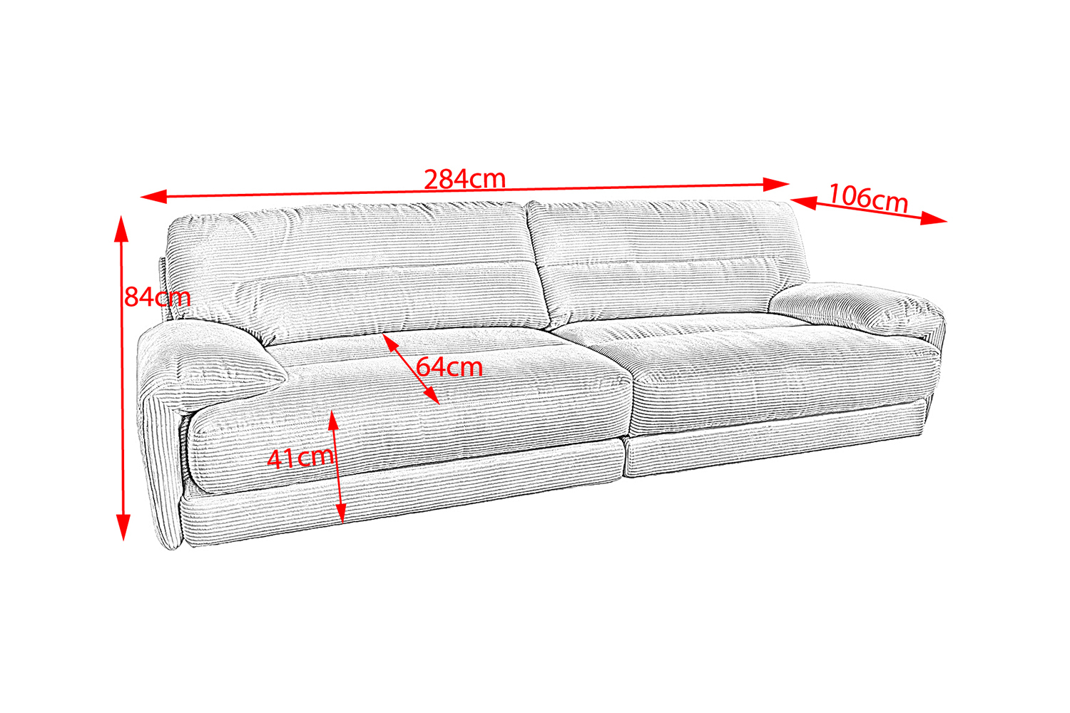 Mit einer großzügigen Breite von 284 cm bietet das Sofa ausreichend Platz für bis zu vier Personen, ideal für gesellige Zusammenkünfte mit Familie und Freunden. Der mittelfeste Sitzkomfort und eine Sitztiefe von 64 cm schaffen eine behagliche Atmosphäre, in der Sie sich entspannt zurücklehnen können.