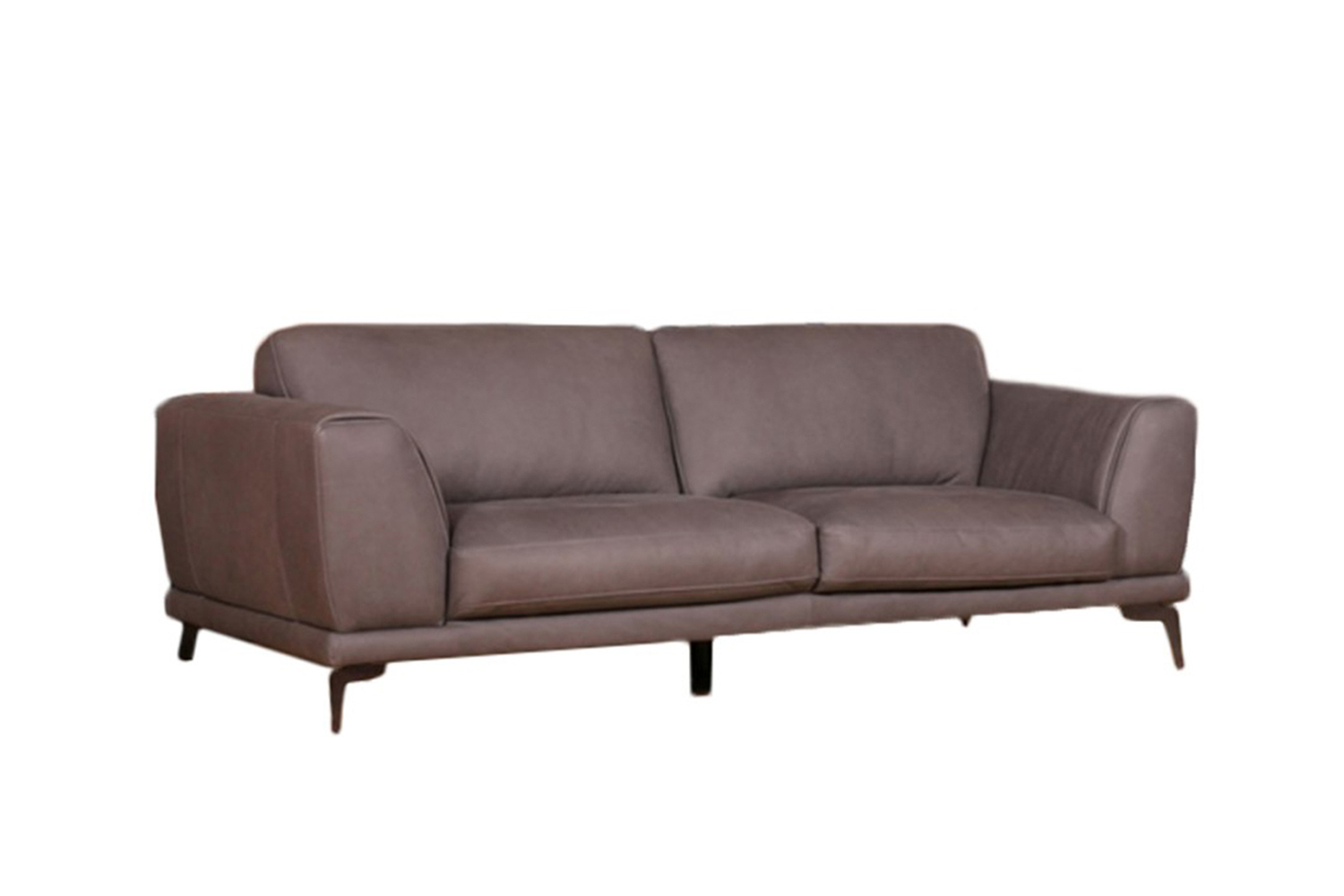 Das Modell Deside wurde komplett in Leder Pallino grau überzogen und lässt sich somit auch frei in den Raum stellen.