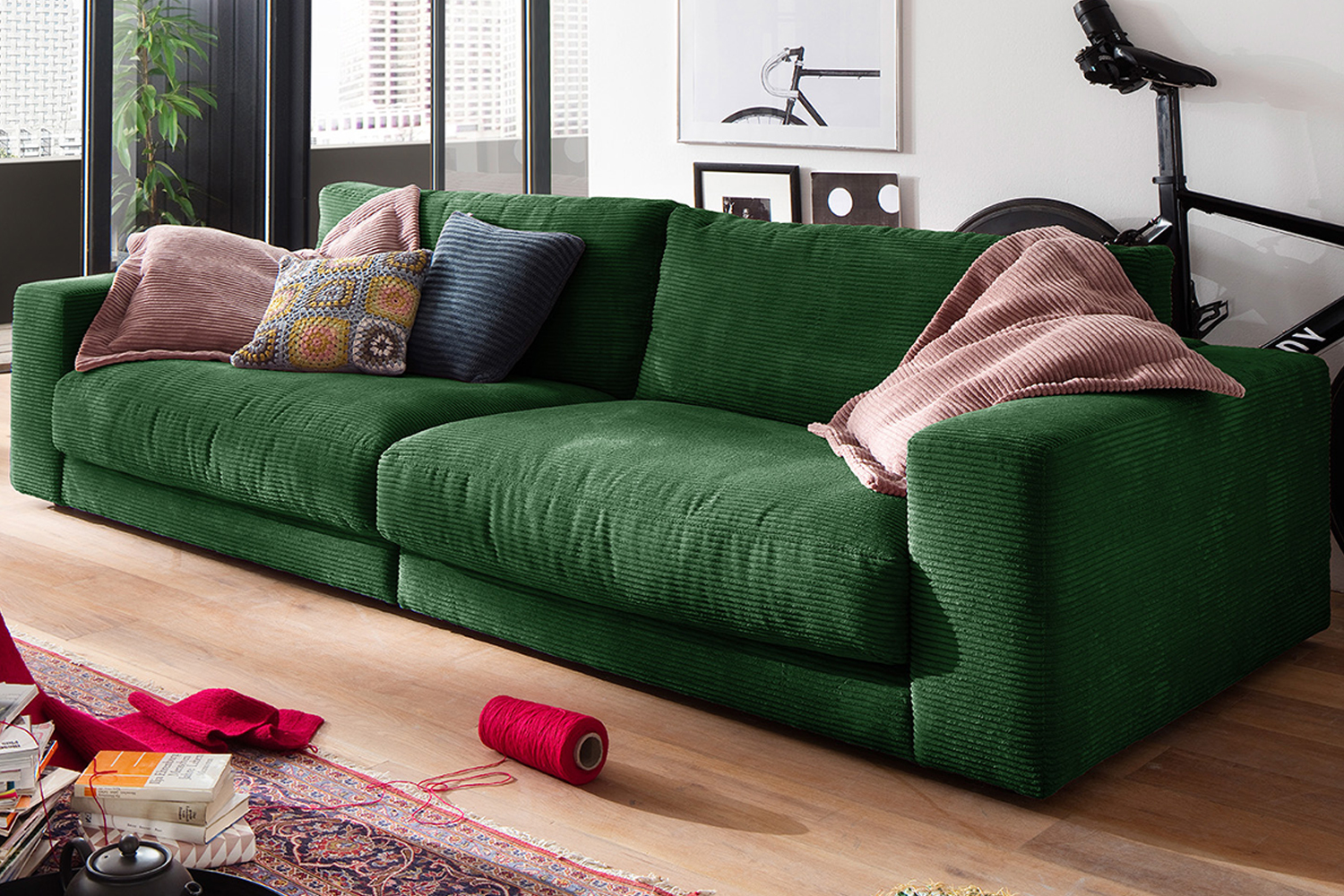 Produktinformationen "B-Ware KAWOLA Sofa MADELINE 3-Sitzer Cord smaragd"