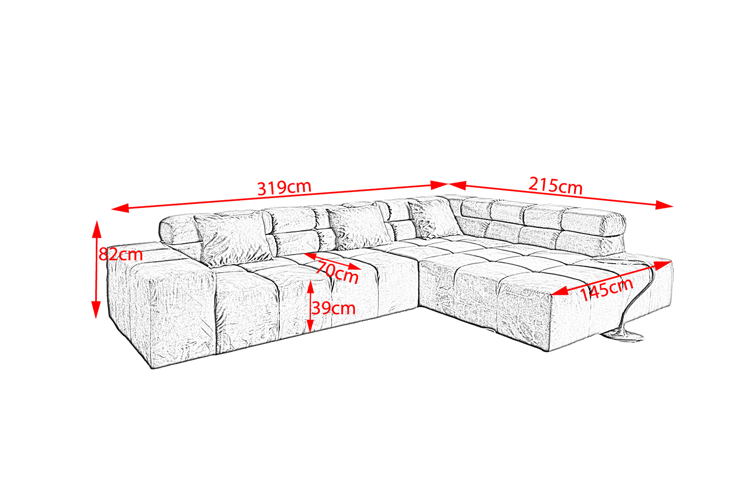- Sitztiefe: 70 cm