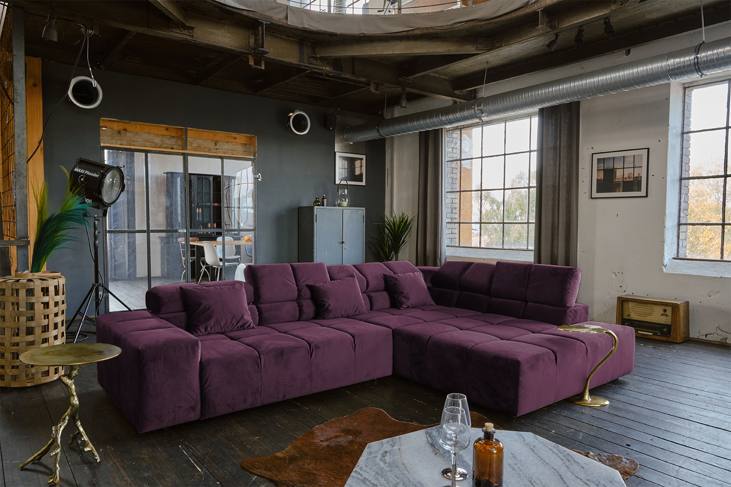 Produktinformationen "B-Ware KAWOLA Sofa NEVADA Ecksofa Velvet purple Recamiere rechts"