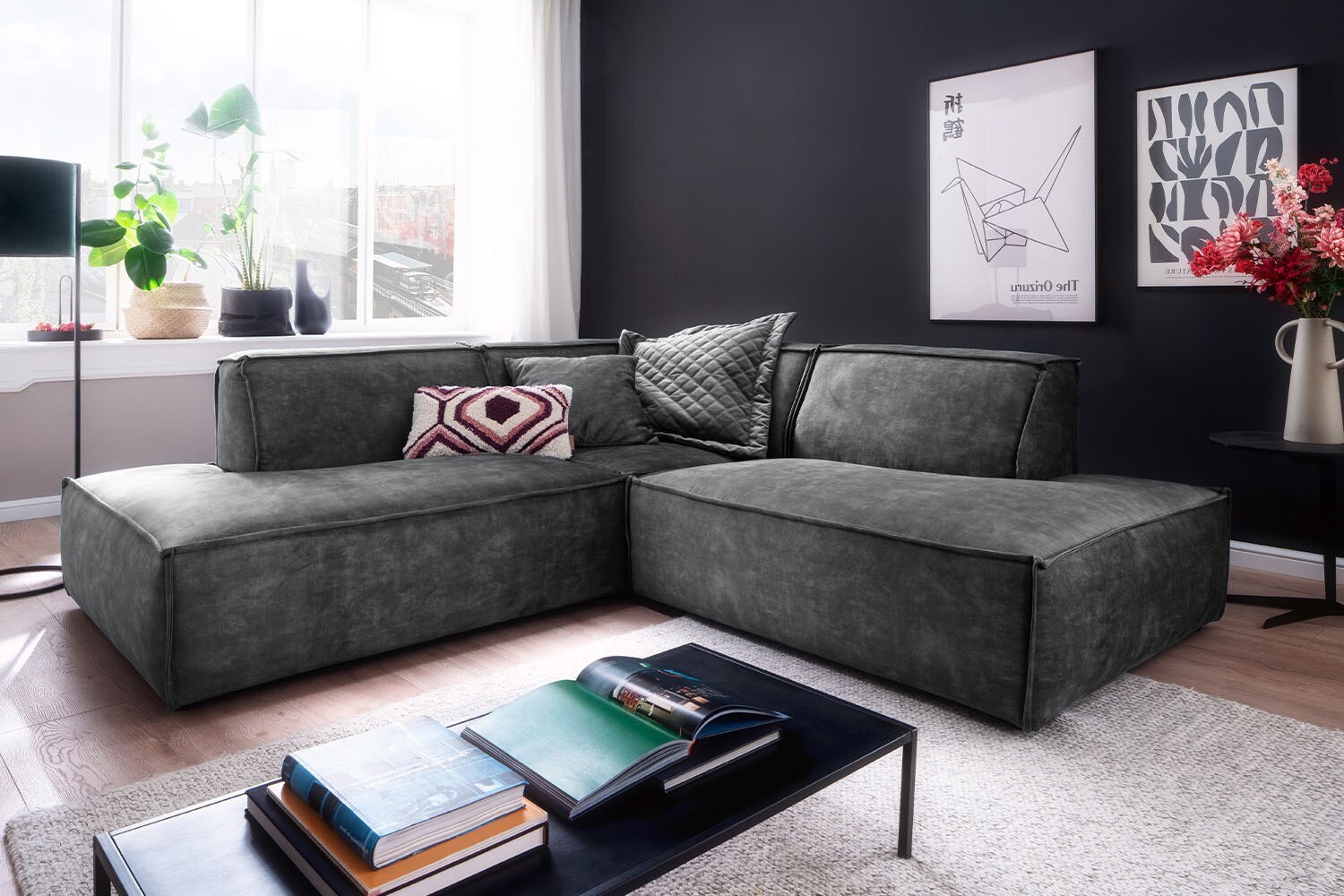 Produktinformationen "B-Ware KAWOLA Sofa SAMU Ecksofa Velvet Vintage grau Recamiere links"