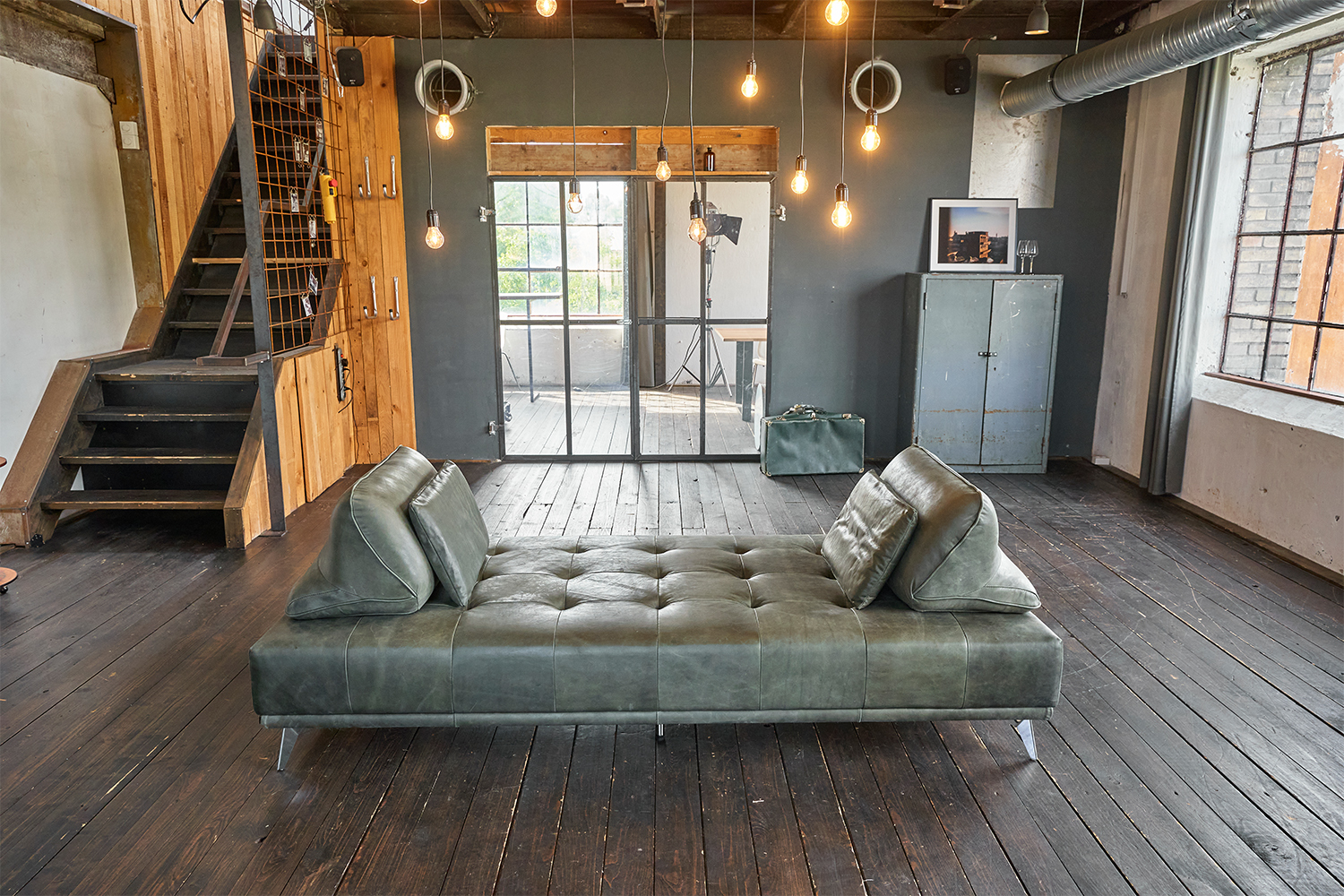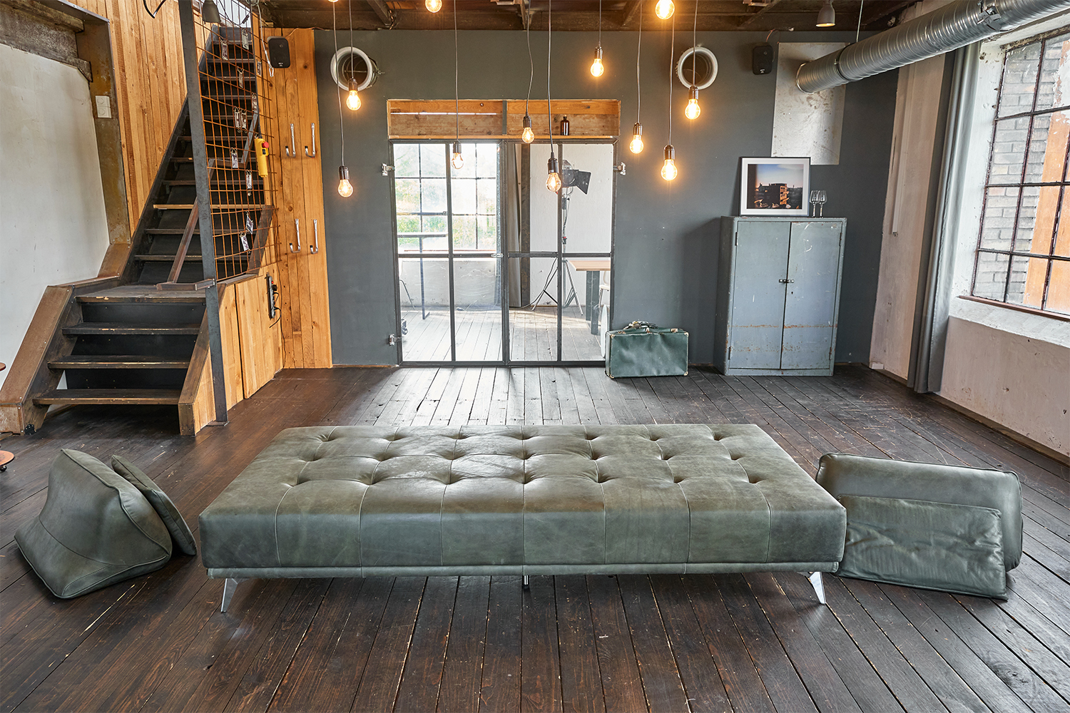 Produktinformationen "B-Ware KAWOLA Sofa WIOLO Schlafsofa Daybed Leder moosgrün"