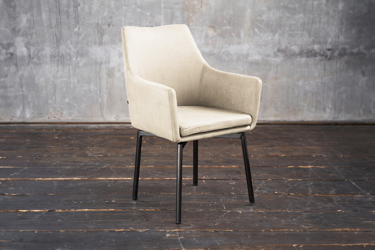 Produktinformationen "B-Ware KAWOLA Stuhl Cali Sessel Microfaser Esszimmerstuhl creme Füße matt-schwarz"
