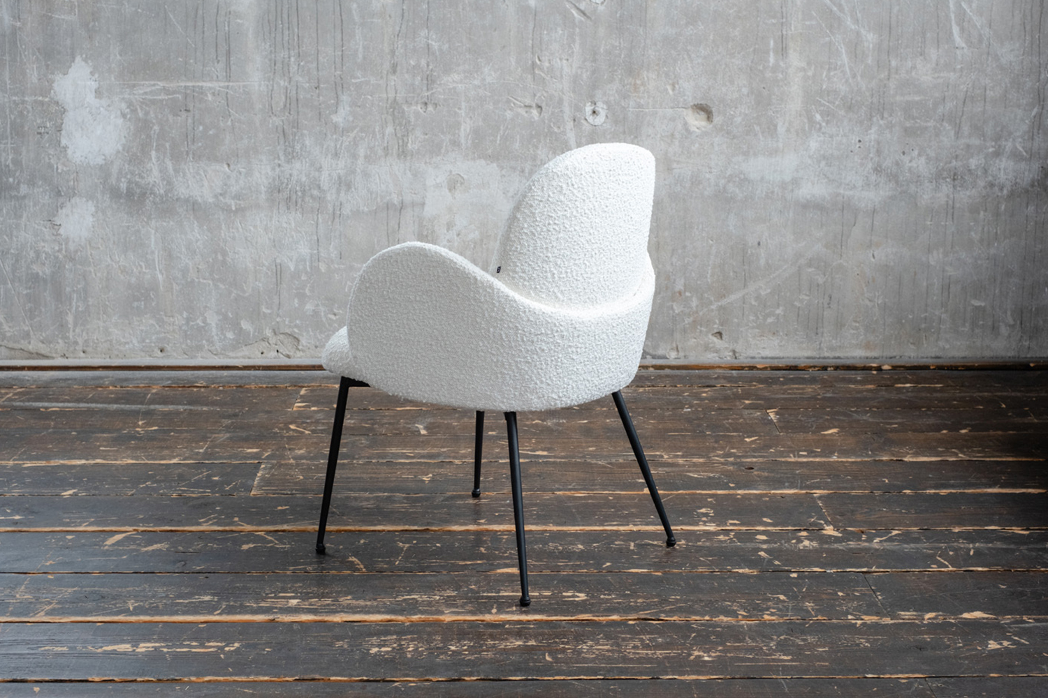 Bei diesem Stuhl handelt es sich um B-Ware aus einer Kundenrücksendung, die gewisse kleinere Mängel aufweist und daher von uns zu einem reduzierten Preis angeboten werden. Mögliche Mängel sind: Kratzer am Gestell, Druckstellen, leichte Verunreinigungen und Farbabweichungen auf der Polsterung sowie Risse im Unterbodenstoff. Bitte schauen Sie sich hierzu die Mängelbilder direkt nach dem Hauptbild an. Diese dienen lediglich der Veranschaulichung möglicher Mängel. Es handelt sich um allgemeine Beispielbilder, die nicht den vorliegenden Artikel darstellen. Der Artikel weist nicht zwangsläufig sämtliche aufgeführten Mängel auf. Auch die auf den Mängelbildern zu sehenden Bezugsstoffe und Farben beziehen sich nicht auf diesen Artikel.Der DEON Esszimmerstuhl von KAWOLA vereint zeitloses Design und unschlagbaren Komfort, wodurch er zum Herzstück Ihres Essbereichs wird. Der Bouclé-Bezug verleiht dem Stuhl eine besondere Anziehungskraft mit seiner gewellten Oberfläche. Großzügige Abmessungen (59 cm Breite, 62 cm Tiefe, 84 cm Höhe) ermöglichen eine perfekte Integration in verschiedene Raumgrößen. Die ergonomische Sitzhöhe von 48 cm und die großzügige Sitztiefe von 48 cm versprechen stundenlangen Komfort.