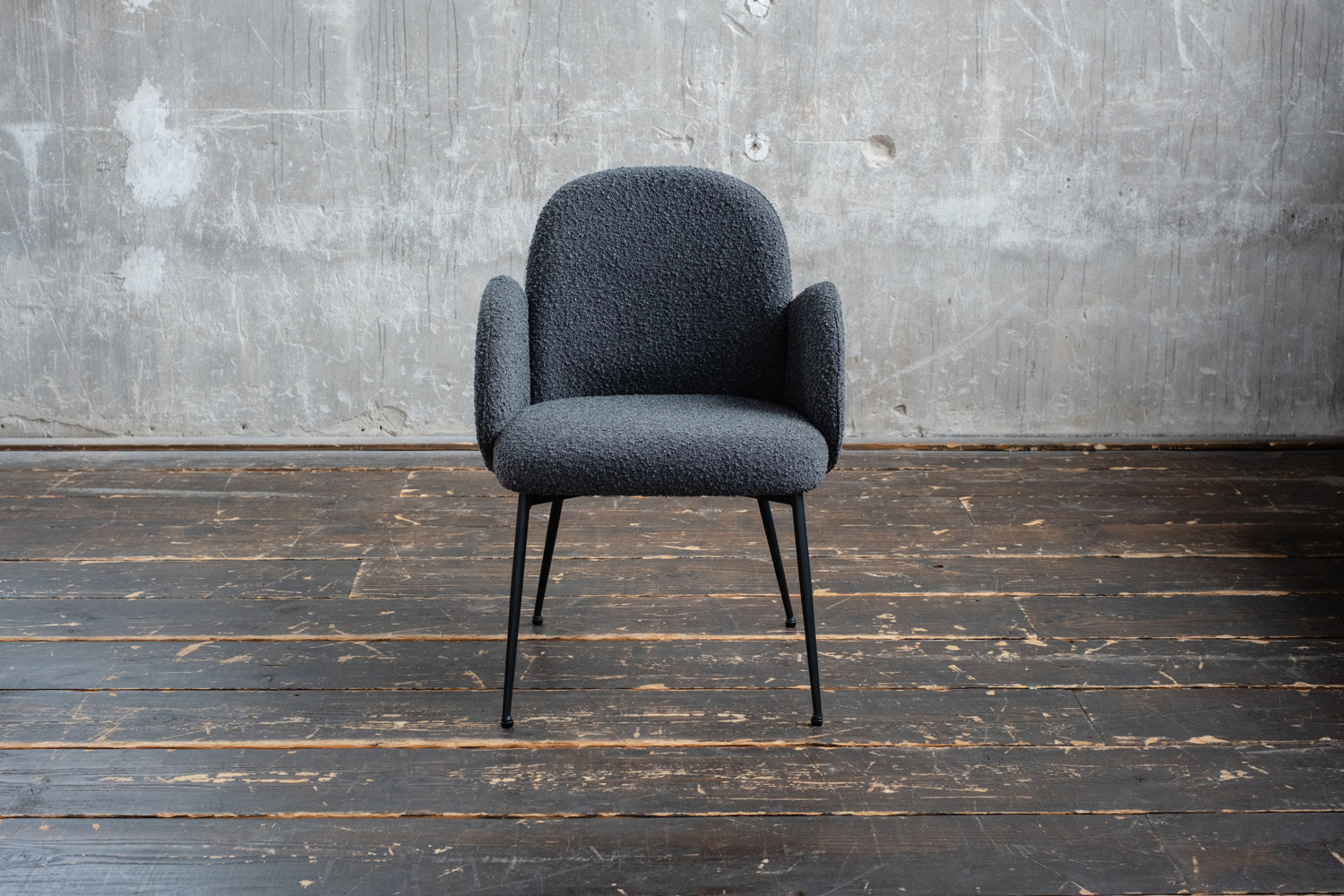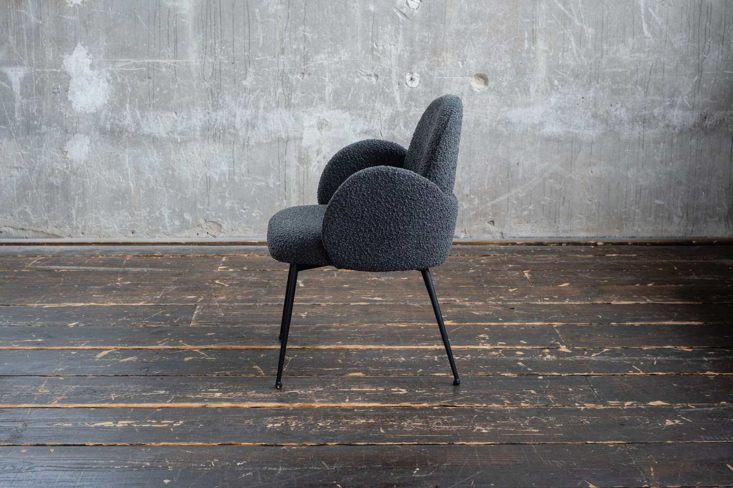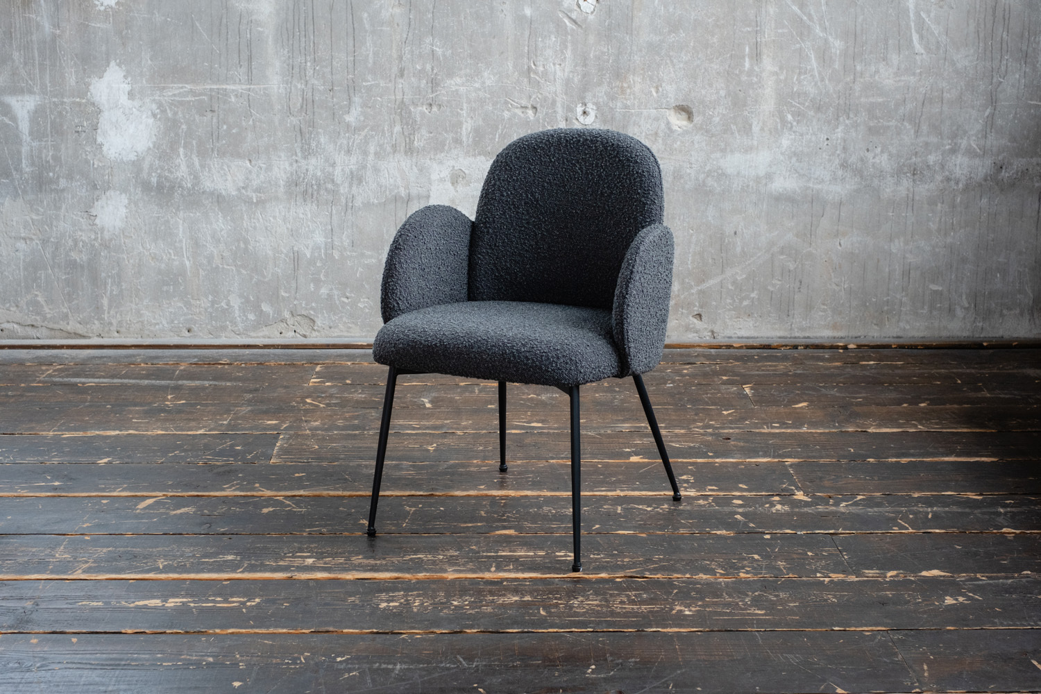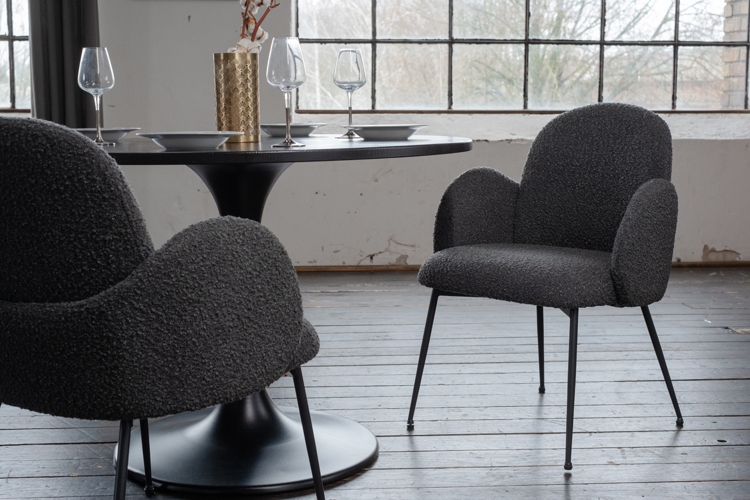 Neben seinem ansprechenden Design bietet der DEON Esszimmerstuhl herausragenden Sitzkomfort. Die geschwungenen Linien und gepolsterten Armlehnen unterstützen Ihre Körperhaltung, laden zu längeren Mahlzeiten und angeregten Gesprächen ein. Die pulverbeschichteten schwarzen Stahlbeine gewährleisten Stabilität und verleihen dem Stuhl eine moderne Ästhetik.