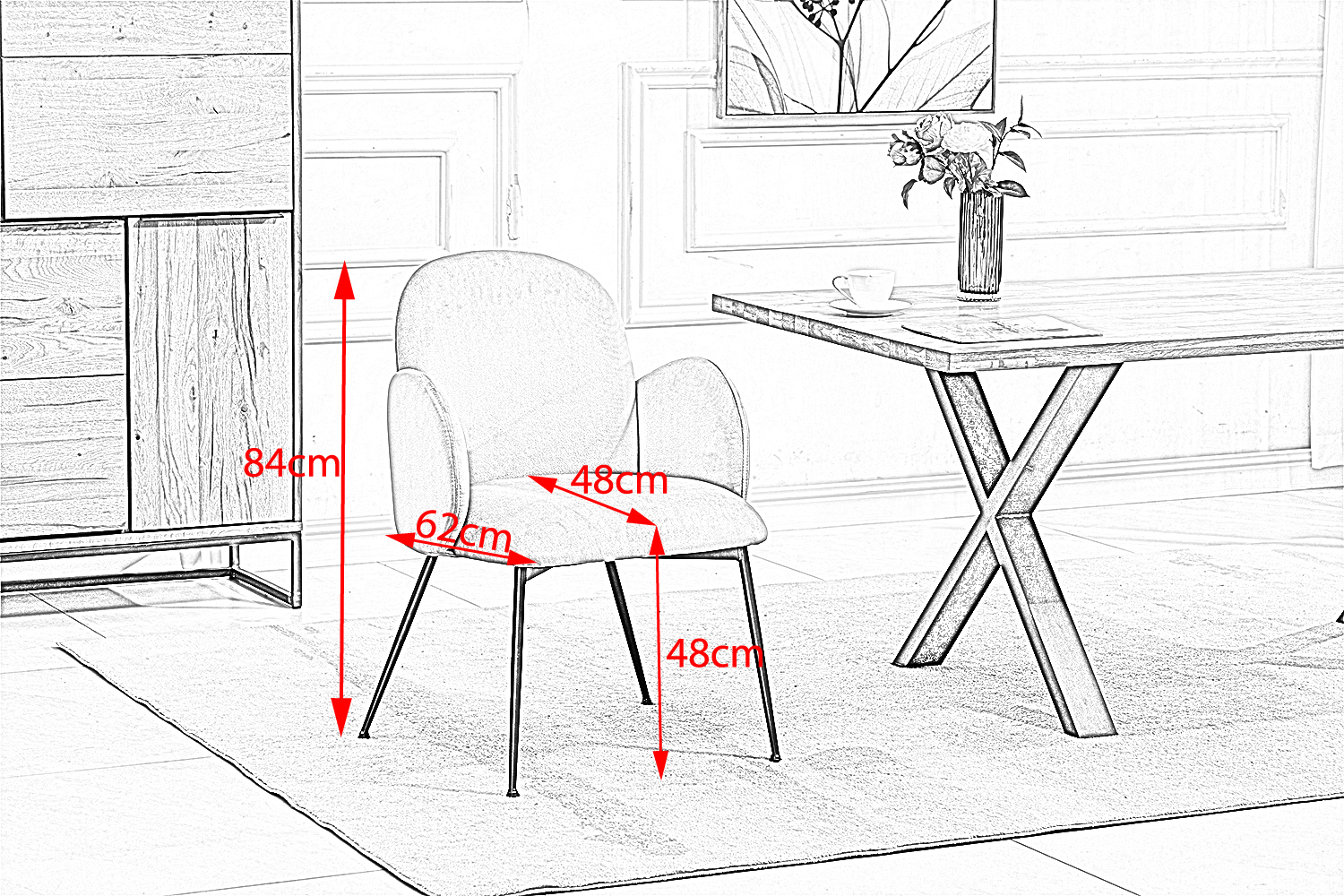 Der DEON Esszimmerstuhl von KAWOLA vereint zeitloses Design und unschlagbaren Komfort, wodurch er zum Herzstück Ihres Essbereichs wird. Der Bouclé-Bezug verleiht dem Stuhl eine besondere Anziehungskraft mit seiner gewellten Oberfläche. Großzügige Abmessungen (59 cm Breite, 62 cm Tiefe, 84 cm Höhe) ermöglichen eine perfekte Integration in verschiedene Raumgrößen. Die ergonomische Sitzhöhe von 48 cm und die großzügige Sitztiefe von 48 cm versprechen stundenlangen Komfort.