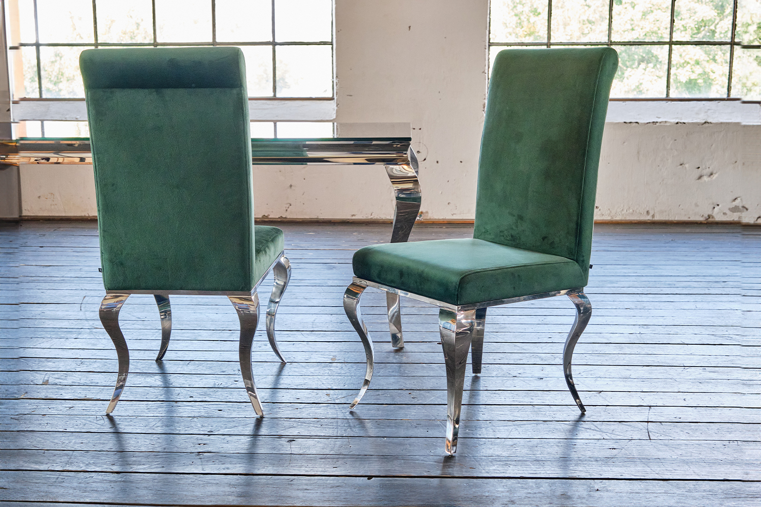 Bei diesem Stuhl handelt es sich um B-Ware aus einer Kundenrücksendung, die gewisse kleinere Mängel aufweist und daher von uns zu einem reduzierten Preis angeboten werden. Mögliche Mängel sind: Kratzer am Gestell, Druckstellen, leichte Verunreinigungen und Farbabweichungen auf der Polsterung sowie Risse im Unterbodenstoff. Bitte schauen Sie sich hierzu die Mängelbilder direkt nach dem Hauptbild an. Diese dienen lediglich der Veranschaulichung möglicher Mängel. Es handelt sich um allgemeine Beispielbilder, die nicht den vorliegenden Artikel darstellen. Der Artikel weist nicht zwangsläufig sämtliche aufgeführten Mängel auf. Auch die auf den Mängelbildern zu sehenden Bezugsstoffe und Farben beziehen sich nicht auf diesen Artikel.Der KAWOLA Esszimmerstuhl LEIA ist ein Eyecatcher im eleganten Barock-Design. Hier können Sie sich bequem zurücklehnen und stilvoll speisen. Der Bezugsstoff aus Velvet ist sehr hochwertig verarbeitet, und die extravaganten Füße aus Edelstahl verleihen dem Stuhl seinen besonderen Look. Der Stuhl LEIA sorgt mit seinem edlen Design für ein exklusives Wohngefühl.