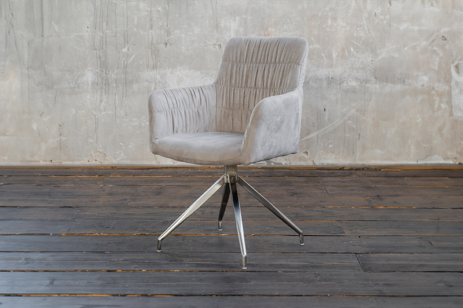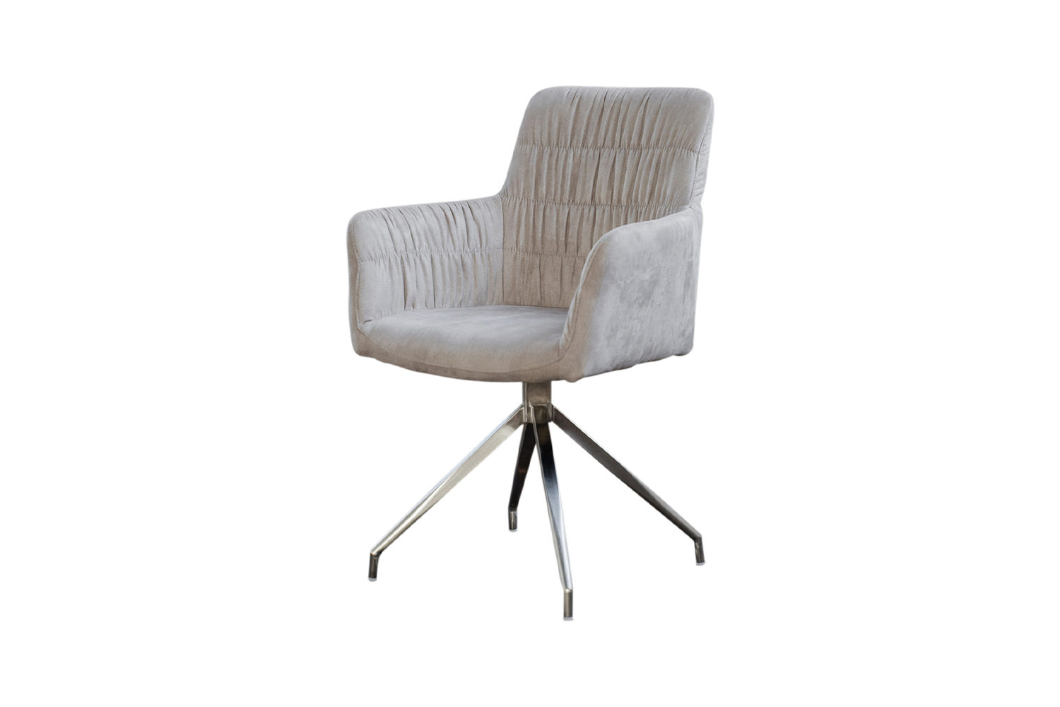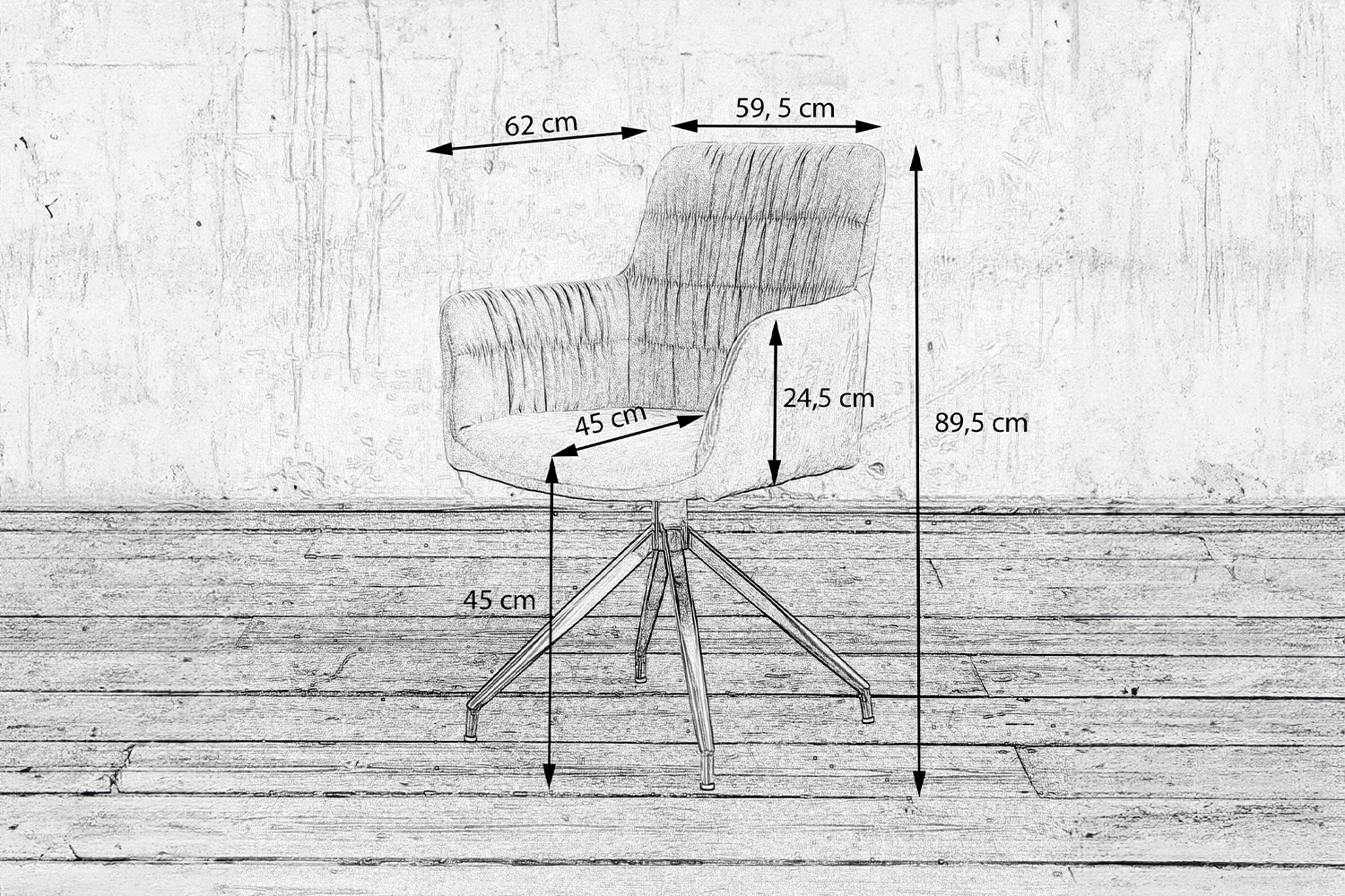 Der KAWOLA Stuhl NIXIE begeistert durch tolle Materialien und außergewöhnliches Design. Die Kombination des hochwertigen Stoffes der Sitzschale und den eleganten Metallfüßen ergeben ein stilvolles Gesamtbild. Der Stuhl verfügt über eine Drehfunktion und bietet sich so auch wunderbar als Konferenzstuhl an. Ein besonderes, optisches Highlight ist die Rückenlehne der Sitzschale, die durch verspielte Raffungen ins Auge fällt. Form und Polsterung des Stuhls sorgen für einen angenehmen Sitzkomfort. Bei Stuhl NIXIE trifft modernes Design auf Funktionalität.