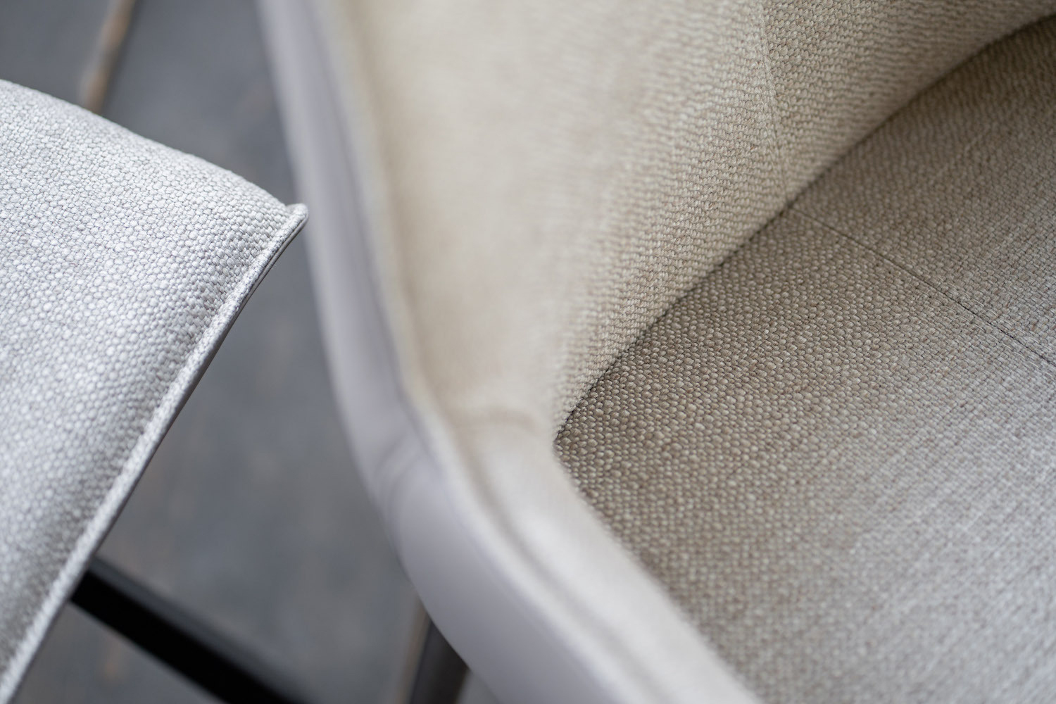 Der KAWOLA Esszimmerstuhl STINE begeistert durch hochwertige Verarbeitung und seine besondere Formsprache. Die Kombination des grauen Kunstleders an der Außenseite der Sitzschale und dem anschmiegsamen Stoff der Sitzfläche machen den Stuhl nicht nur Optisch zum Star eines jeden Essbereiches. Die eleganten Füße aus gebürstetem Edelstahl verfügen über eine Drehfunktion und runden den Stuhl perfekt ab. So ergibt sich ein stilvolles Gesamtbild. Form und Polsterung des Stuhls sorgen für einen angenehmen Sitzkomfort. Nicht nur im Esszimmer macht STINE eine tolle Figur, denn auch für den Objektbereich ist der Stuhl perfekt geeignet.
