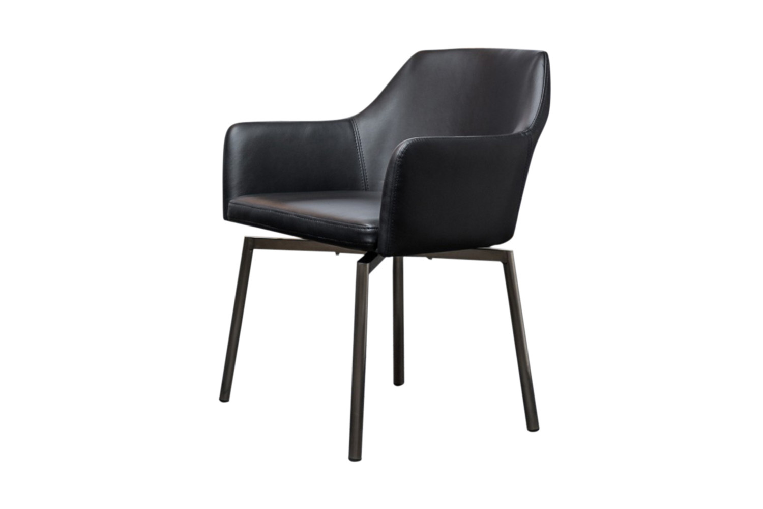 Der Stuhl Loui überzeugt durch sein schlichtes und elegantes Design. Der Esszimmerstuhl vereint das Klassische mit dem Modernen auf gekonnte Art und Weise. Durch sein klassisches und zugleich modernes Aussehen kann der Stuhl Loui in jedes bestehende Wohnambiente integriert werden. Das Gestell in Edelstahl harmonisiert hervorragend mit der Wahl des Bezuges und verleht dem Stuhl seinen modernen Charakter. Der Clou des Stuhls liegt darin, dass die Sitzschale über eine Drehfunktion verfügt. Der Bezug in Lederimitat ist pflegeleicht und Verschmutzungen können mit einem feuchten Tuch einfach entfernt werden. Durch die Wahl des Bezuges eignet sich der Stuhl mit Armlehnen für jeden Einsatzbereich; ganz gleich ob im Esszimmer, im Konferenzraum oder im Wartebereich der Stuhl Loui macht überall eine gute Figur.