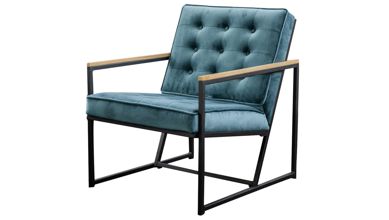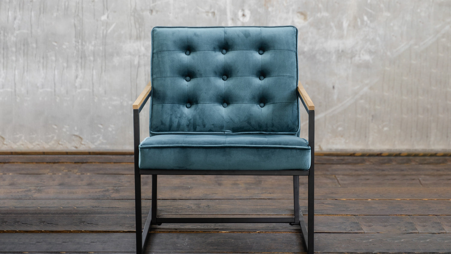 Trotz der geradlinigen Silhouette des Stuhls strahlt er durch das Sitz- und Rückenpolster welche mit mit anschmiegsamem, samtartigem Stoff bezogen wurden Komofort und Gemütlichkeit aus.