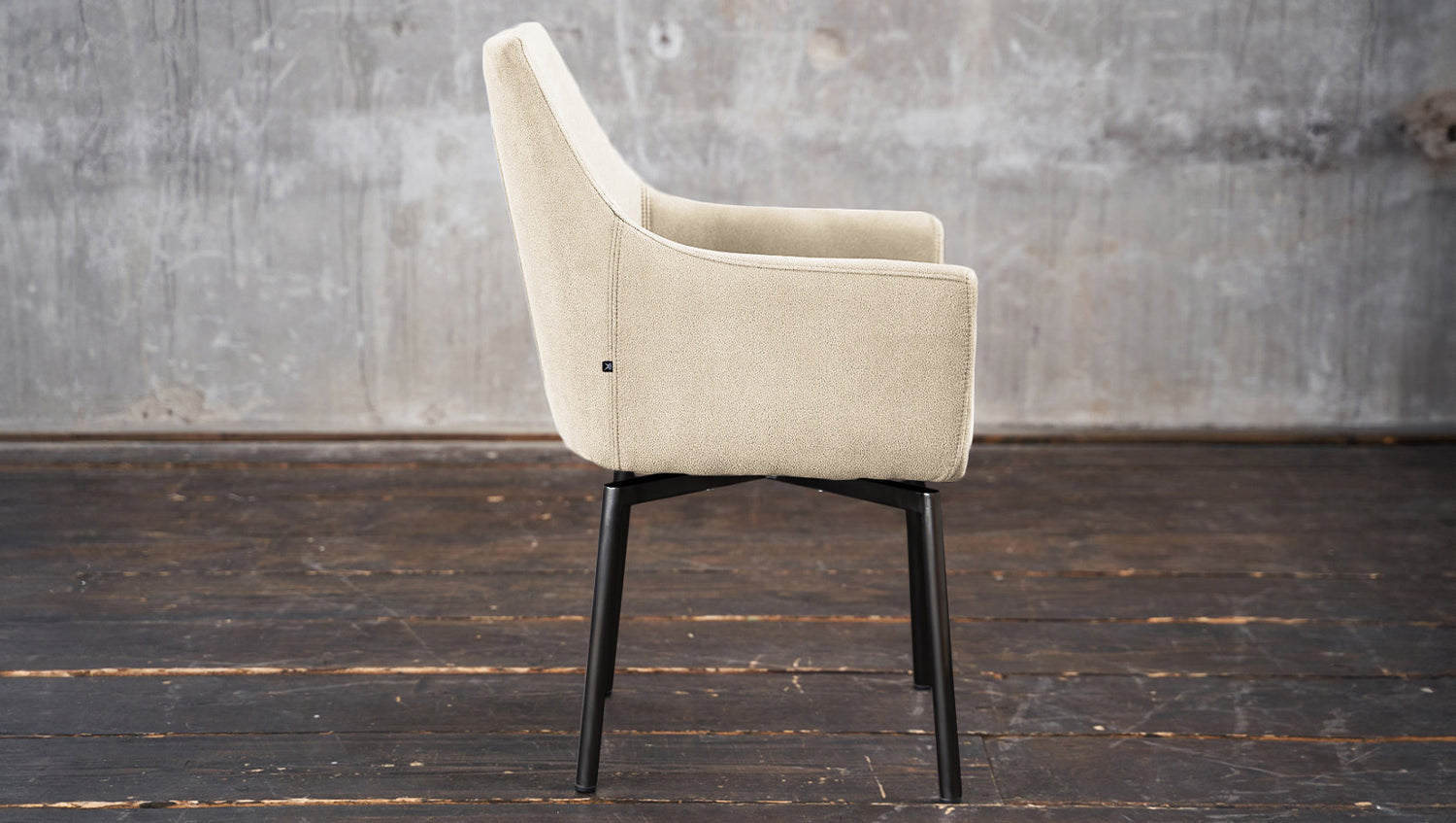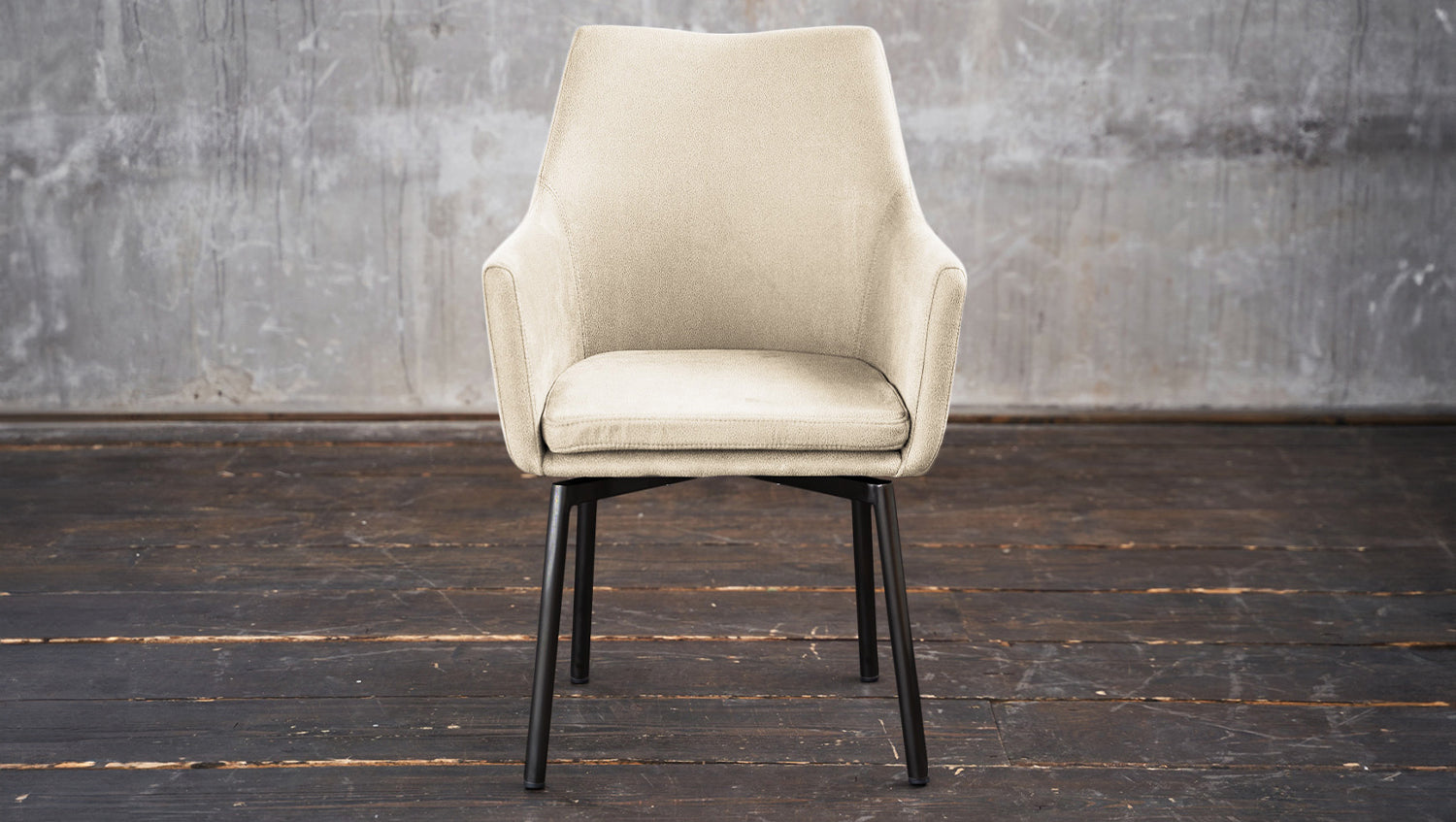 B-Ware KAWOLA Stuhl Cali Sessel Microfaser Esszimmerstuhl creme Füße matt-schwarz