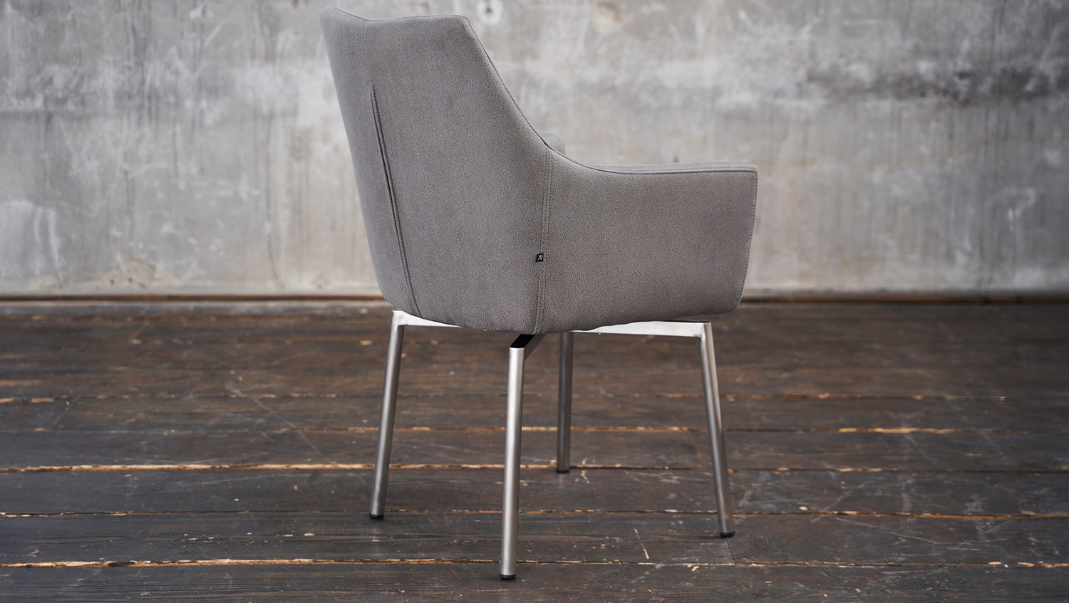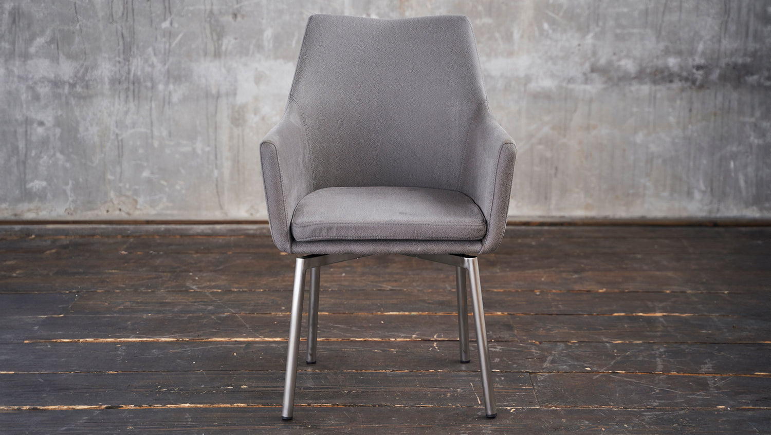 B-Ware KAWOLA Stuhl Cali Sessel Microfaser hellgrau Füße Edelstahl