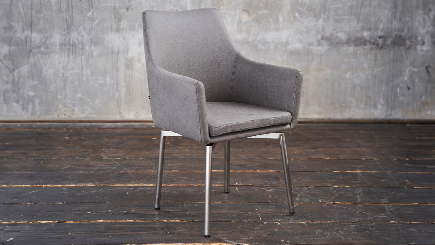 Bei diesem Stuhl handelt es sich um B-Ware aus einer Kundenrücksendung, die gewisse kleinere Mängel aufweist und daher von uns zu einem reduzierten Preis angeboten werden. Mögliche Mängel sind: Kratzer am Gestell, Druckstellen, leichte Verunreinigungen und Farbabweichungen auf der Polsterung sowie Risse im Unterbodenstoff. Bitte schauen Sie sich hierzu die Mängelbilder direkt nach dem Hauptbild an. Diese dienen lediglich der Veranschaulichung möglicher Mängel. Es handelt sich um allgemeine Beispielbilder, die nicht den vorliegenden Artikel darstellen. Der Artikel weist nicht zwangsläufig sämtliche aufgeführten Mängel auf. Auch die auf den Mängelbildern zu sehenden Bezugsstoffe und Farben beziehen sich nicht auf diesen Artikel. Der Stuhl Cali überzeugt durch sein schlichtes und elegantes Design. Der Esszimmerstuhl vereint das Klassische mit dem Modernen auf gekonnte Art und Weise. Durch sein klassisches und zugleich modernes Aussehen kann der Stuhl Cali in jedes bestehende Wohnambiente integriert werden. Das Gestell in Edelstahl harmonisiert hervorragend mit der Wahl des Bezuges und verleht dem Stuhl seinen modernen Charakter. Der Clou des Stuhls liegt darin, dass die Sitzschale über eine Drehfunktion verfügt. Ganz gleich ob im Esszimmer, im Konferenzraum oder im Wartebereich der Stuhl Cali macht überall eine gute Figur.
