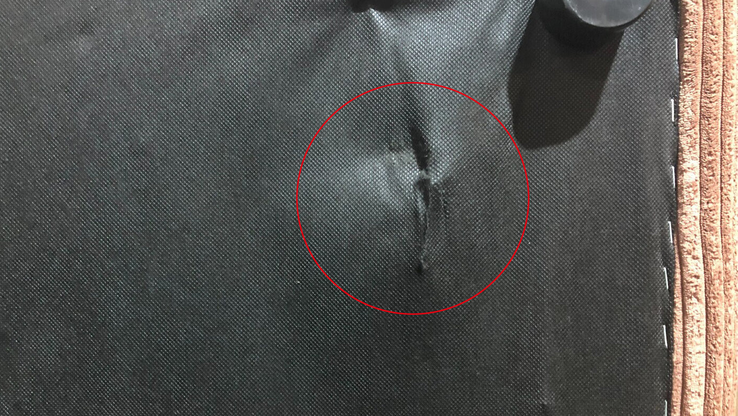 Unterbodenstoff gerissen im nicht sichtbaren Bereich
