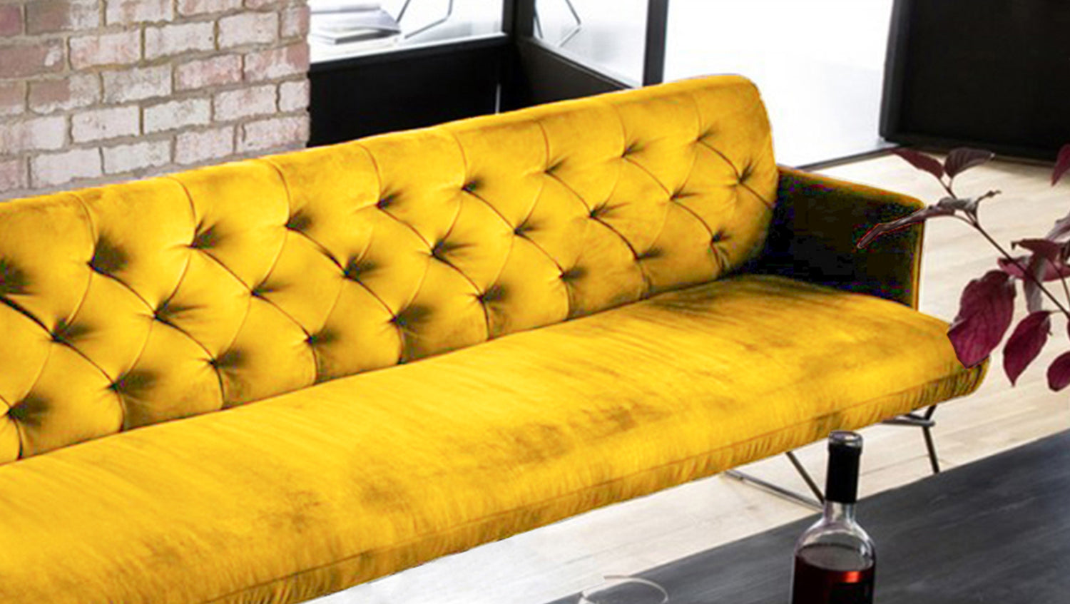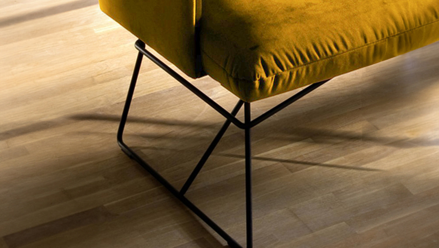 Durch den legeren Sitzaufbau ist eine modellbedingte und gestalterisch gewünschte Wellenbildung warentypisch und unterstreicht den gemütlichen Faktor der Sitzbank. Die behagliche Polsterung wird durch den samtigen Velvet-Bezug noch einmal zusätzlich unterstrichen, sodass auch die Haptik der Bank gemütlich und kuschelig erscheint.