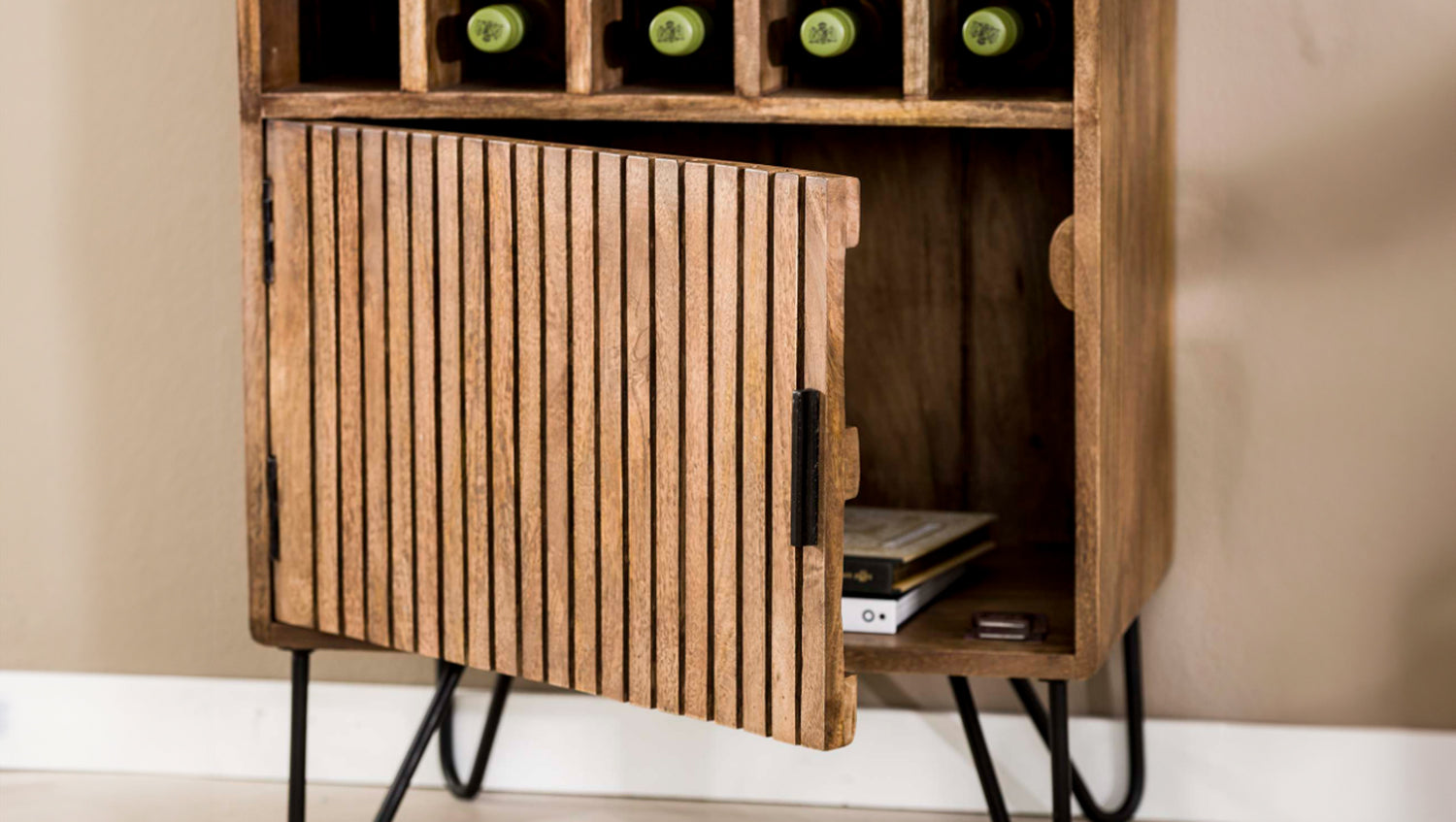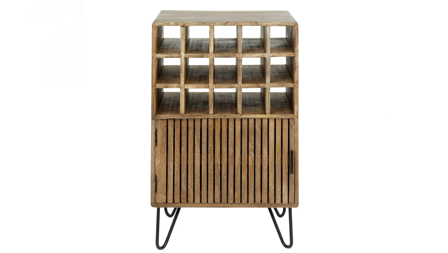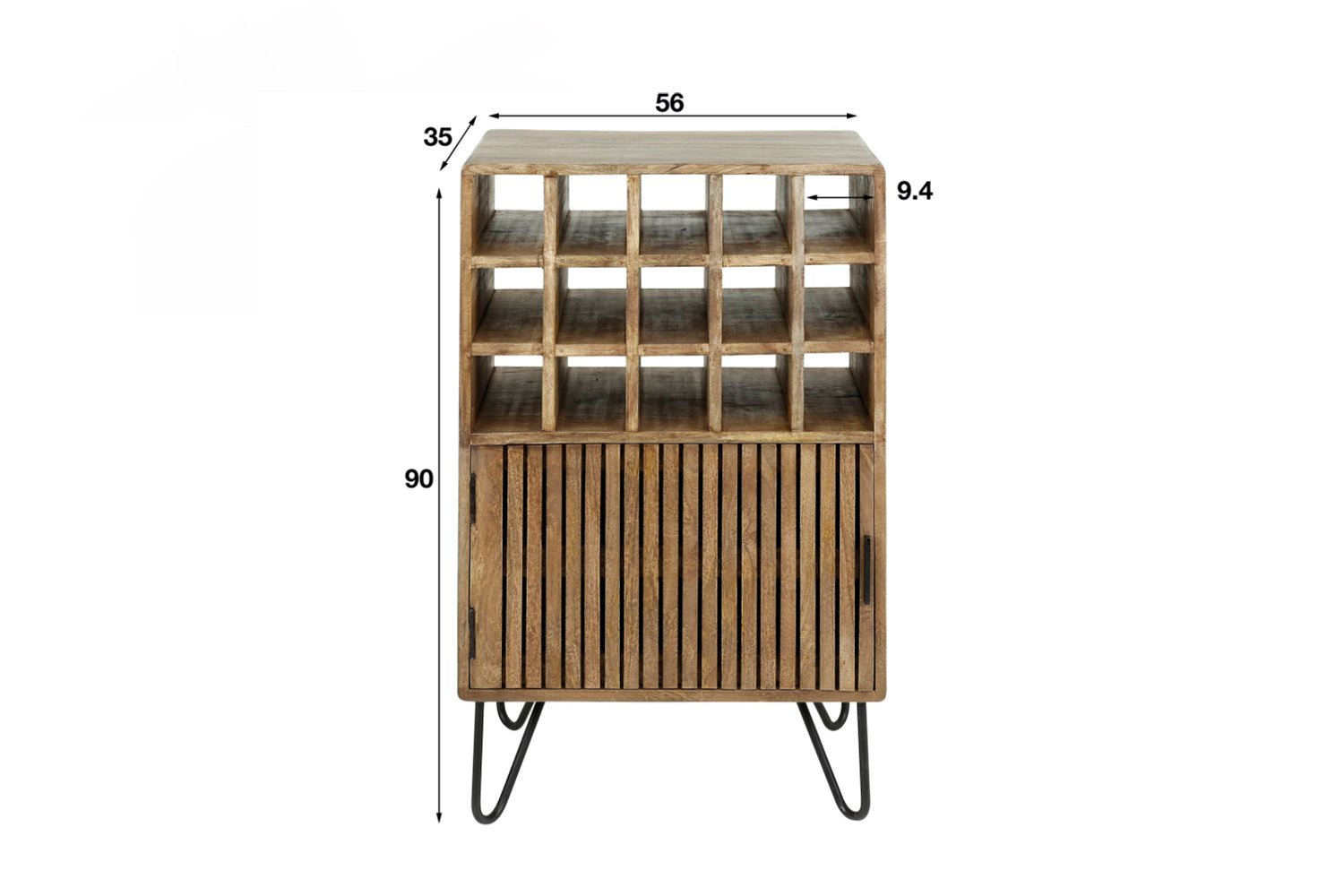 Mit 15 Weinfächern bietet der Schrank großzügigen Platz zur stilvollen Aufbewahrung Ihrer Lieblingsweine. Hinter der Tür lassen sich zudem Gläser oder Zubehör praktisch verstauen. Die robuste Verarbeitung sorgt für Stabilität und Langlebigkeit.