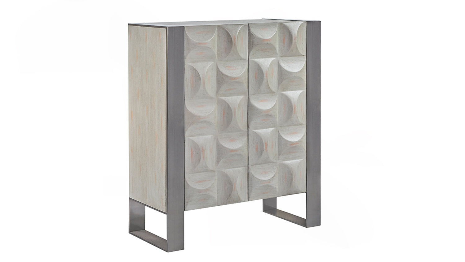 KAWOLA Highboard MARGO 2 Türen Ulme furniert grau Fuß Edelstahl gebürstet