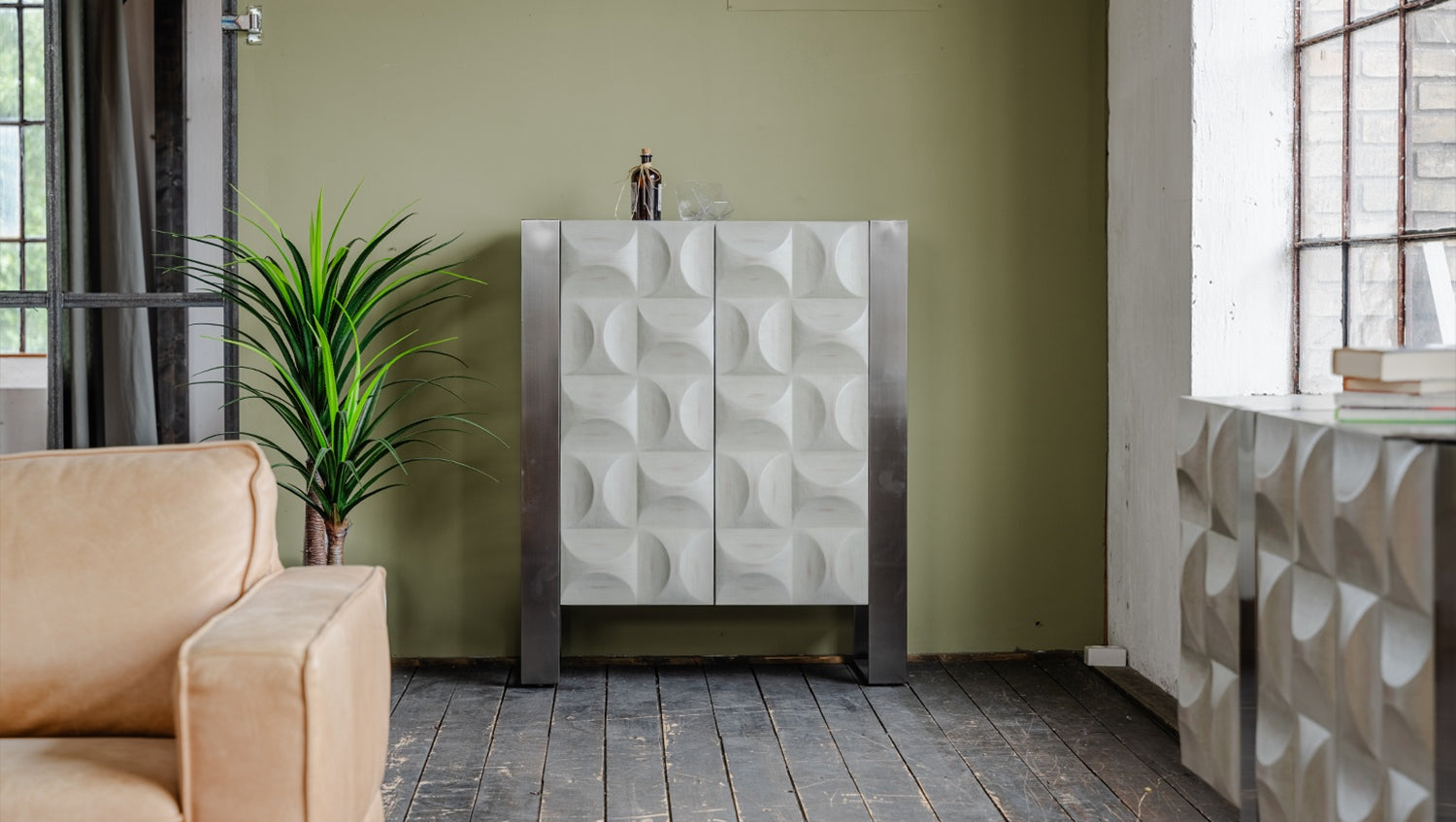 Das KAWOLA Highboard MARGO besticht durch seine elegante Kombination aus modernem Design und praktischer Funktionalität. Der Korpus und die Türen sind stilvoll mit hochwertigem grauen Ulmenholz furniert, das dem Möbelstück eine luxuriöse Optik verleiht. Die zwei Türen bieten großzügigen Stauraum und lassen sich dank des Muldengriffes an der Oberseite mühelos öffnen. Die silberfarbenen Kufenfüße aus gebürstetem Edelstahl sorgen für einen modernen, zeitlosen Look und bieten gleichzeitig stabile Standfestigkeit. Variabel einsetzbare Einlegeböden ermöglichen eine flexible Nutzung des Innenraums und passen sich Ihren Bedürfnissen an. Das Highboard MARGO von KAWOLA fügt sich perfekt in jedes Wohnambiente ein und ist ideal für Liebhaber von ausgefallenen, aber dennoch eleganten Möbelstücken. Entdecken Sie die perfekte Kombination aus Design und Funktionalität mit dem Highboard MARGO!