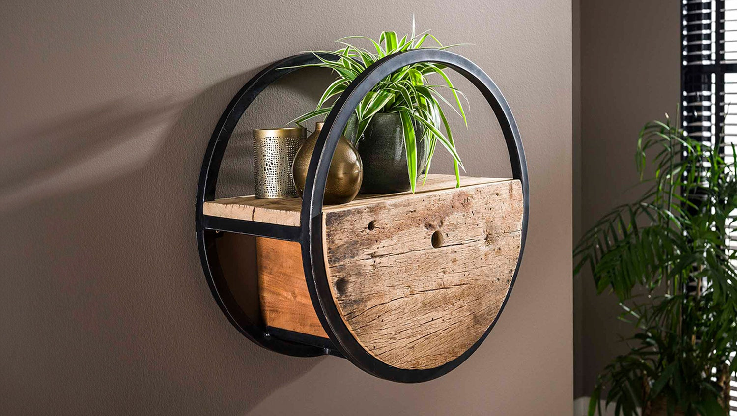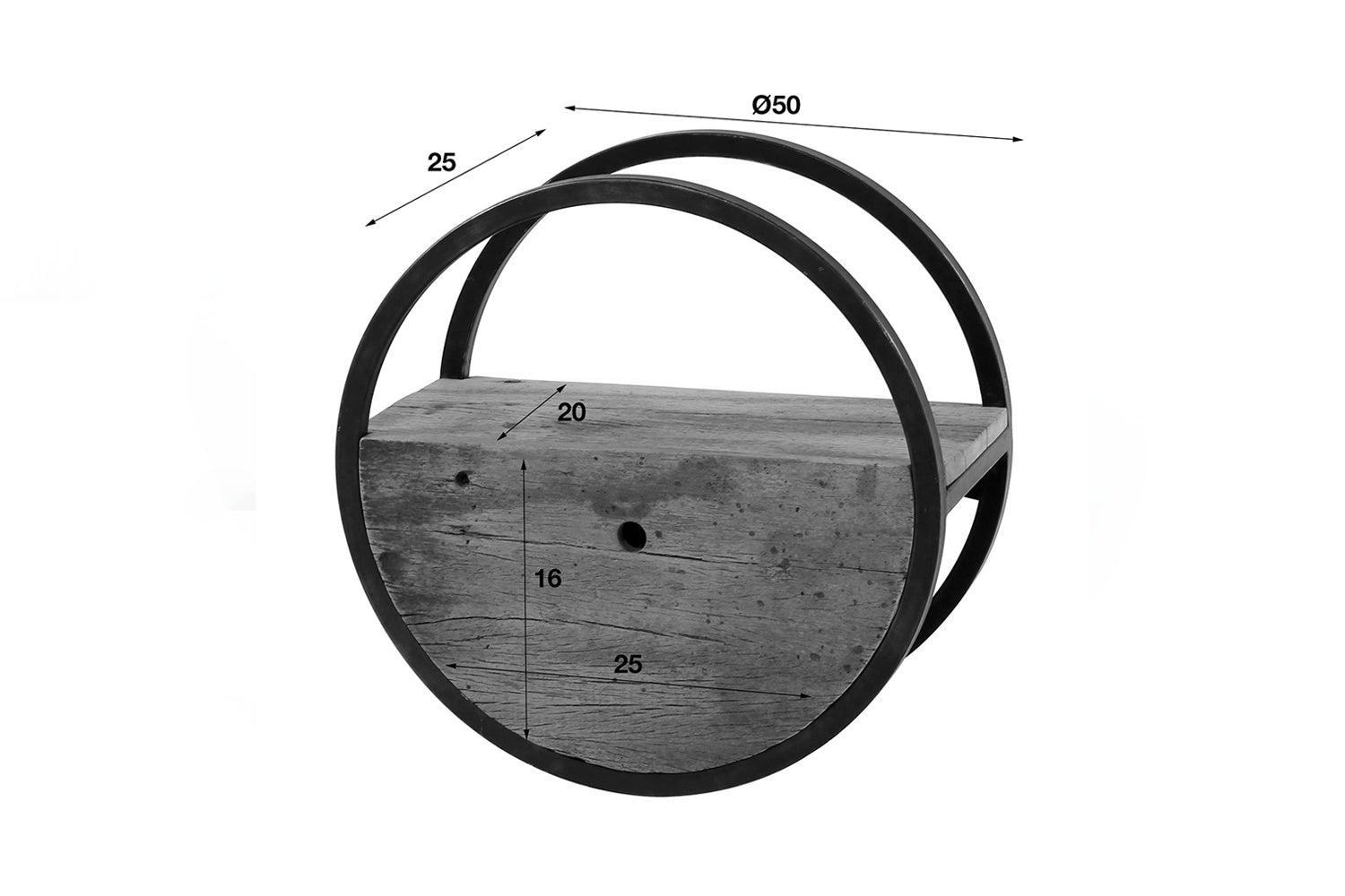 Das KAWOLA Wandregal RADEL Ø50 rund ist ein außergewöhnliches Möbelstück, das rustikalen Charme mit modernem Industriedesign verbindet. Gefertigt ist dieses Wandregal aus robustem Hartholz, dessen einzigartige Geschichte sich in seiner Optik widerspiegelt: Es stammt beispielsweise von Eisenbahnschwellen, alten Zügen oder Kirchenböden. Dies verleiht dem Holz eine raue und natürliche Oberfläche sowie ein unverwechselbares, robustes Aussehen. Der Kontrast dazu bildet der schwarz geschliffene Metallrahmen, der dem Regal eine moderne und industrielle Note verleiht. Jedes Regal verfügt zudem über eine integrierte Schublade, die praktischen Stauraum für kleine Gegenstände bietet.