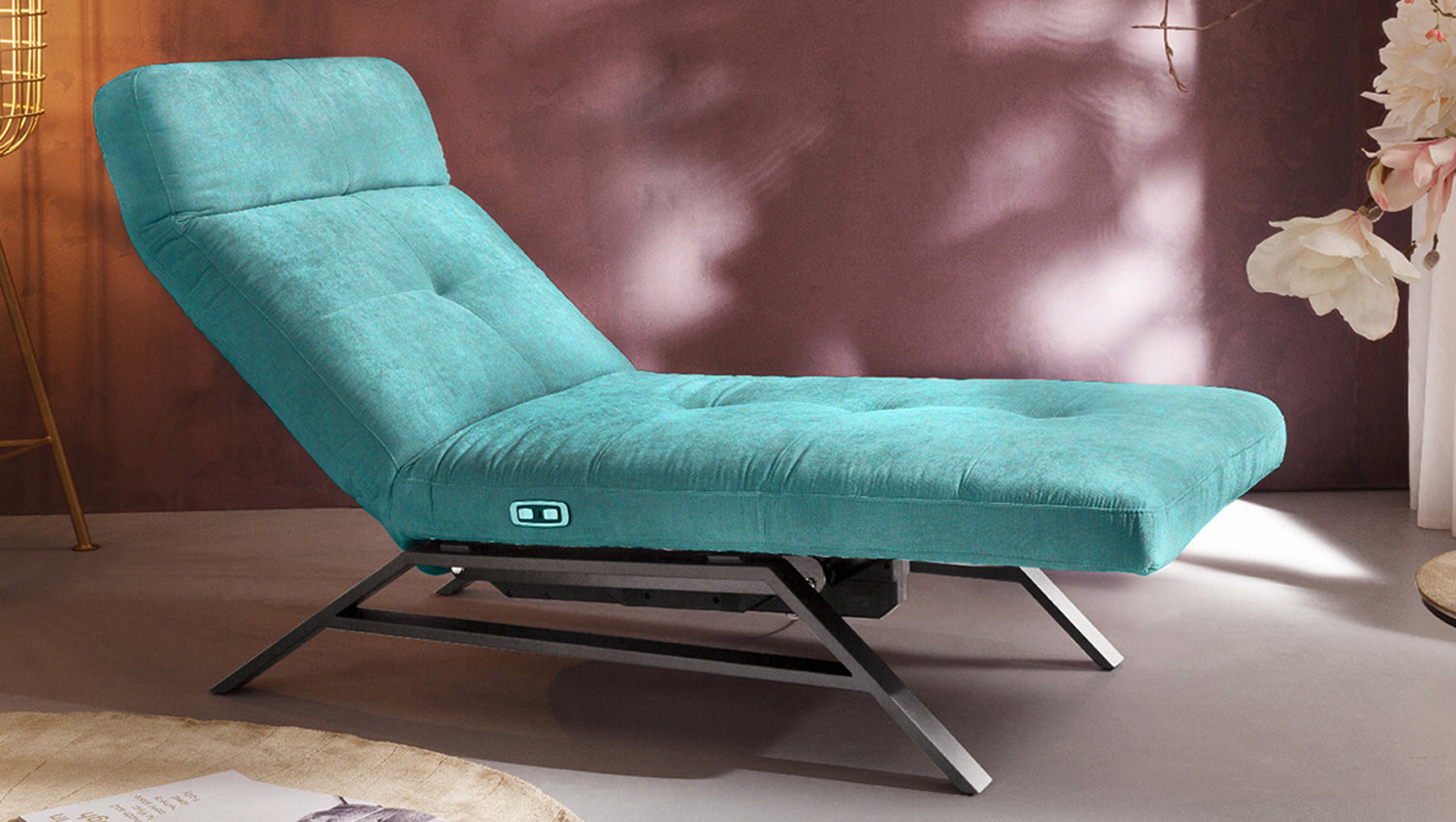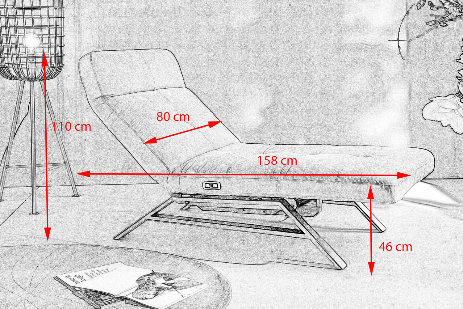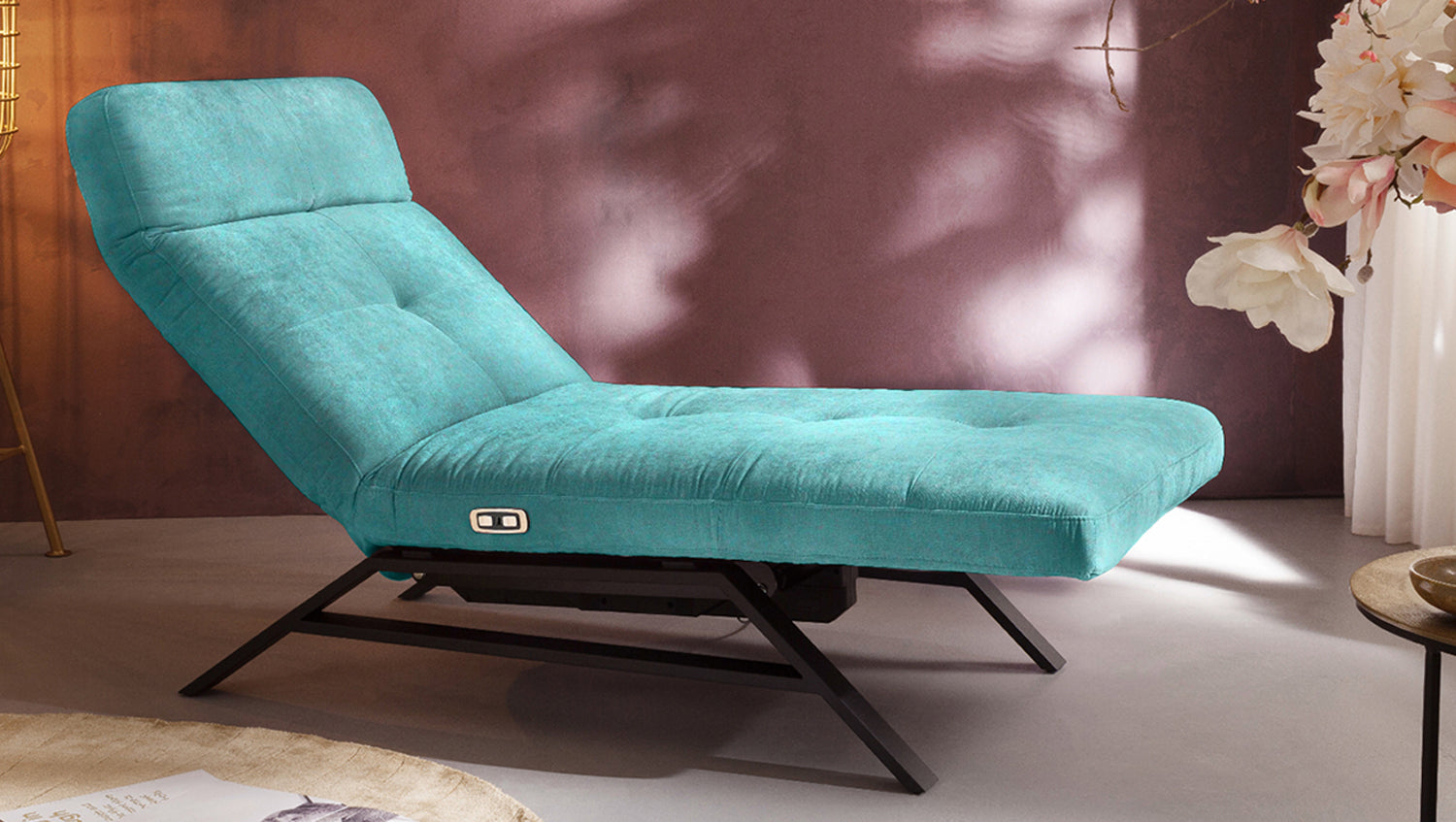 Die KAWOLA Liege AMERIVA ist eine wunderbare Kombination aus Design und Funktion. Die Metallkufen in schwarz matt bilden den Kontrast zum angesagten Velvet-Stoff. Allerdings ist die Relaxliege nicht nur rein optisch ein richtiges Highlight - auch die Funktionen betreffend bleibt hier kein Wunsch offen. Die motorische Funktion, die durch die Knöpfe auf der rechten Seite bedient werden kann, bietet eine stufenlos einstellbare Liegeposition. Zusätzlich verfügt die Liege über einen USB-Anschluss. Die Einsetzbarkeit dieses Möbelstücks ist so vielfältig wie seine Funktionen: Nicht nur im heimischen Wohnbereich, auch in der Lobby oder im Ruheraum macht die Relaxliege AMERIVA eine tolle Figur.