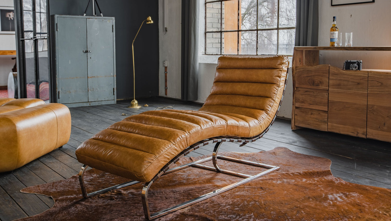 Die KAWOLA Polsterliege SIRY vereint exklusives Design mit unglaublich hoher Qualität. Das zeitlose Design der Relaxliege sowie die Kombination von hochwertigem Vintage-Leder mit einem Gestell aus Metall machen dieses Möbelstück zu einem ganz besonderen Highlight in Ihrem Wohnraum. Die balkenförmigen Absteppungen des Polsters tragen zusätzlich zum außergewöhnlichen Design der Liege bei. Abgerundet wird dieses Möbelhighlight durch die bequeme Polsterung aus Schaum und Federn, die einen zum längeren Verweilen auf der Liege einladen. Ob nun im Schaf- ,Wohn- oder Gästezimmer - die Polsterliege macht überall eine hervorragende Figur. Hier lassen sich gemütliche Stunden beim Lesen, Fernsehen oder auch einfach nur beim Entspannen nach einem langen Arbeitstag verbringen. Vintage-Leder ist im Griff sehr warm und weich, zudem besitzt es vollständige Atmungsaktivität. Die Offenporigkeit macht beim Berühren des Leders auch einen Temperaturausgleich möglich, sodass sich das Leder schön warm anfühlt. Durch das Auftragen einer Wachsschicht oder eines sogenannten Effektfinish wird dem Leder ein antiker Look verliehen. Farbunterschiede und sichtbare Naturmerkmale, wie z.B. Mückenstiche und Narben, zeigen die Echtheit des Leders. Aufgrund der Offenporigkeit entwickelt dieses Leder beim Gebrauch seinen individuellen Charakter.