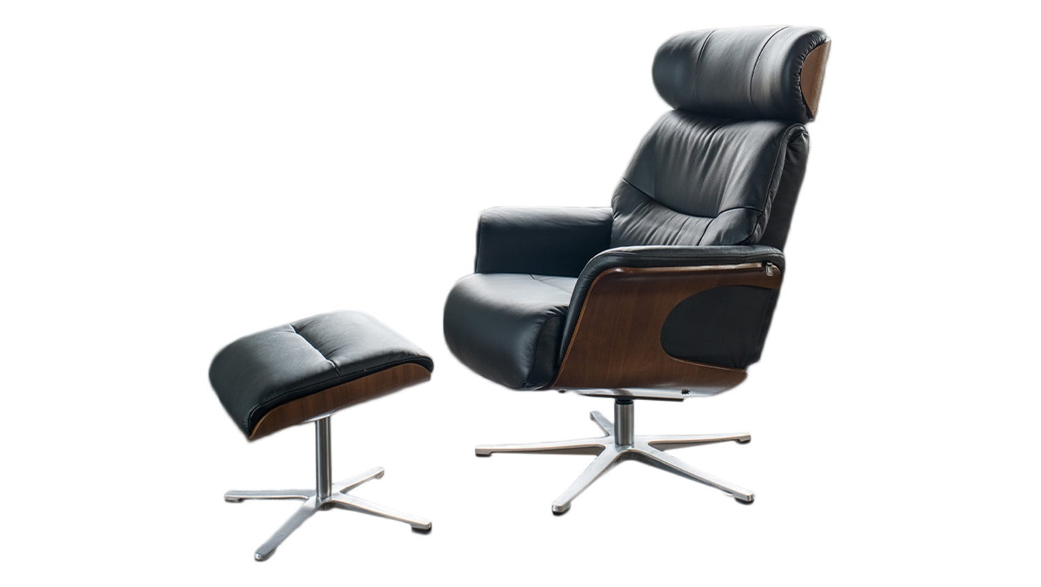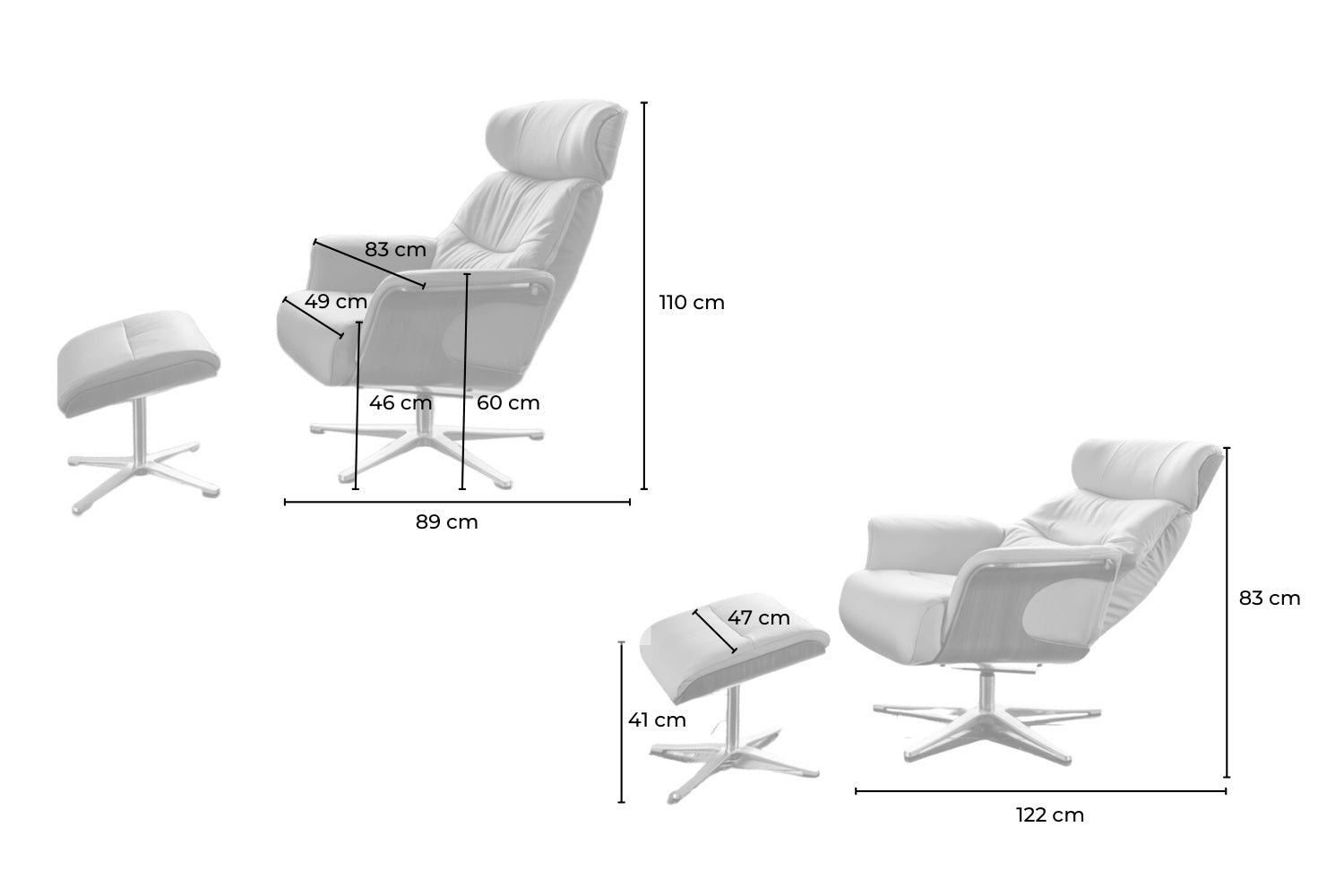 KAWOLA Sessel TOSAR Relaxsessel drehbar Leder schwarz mit Hocker