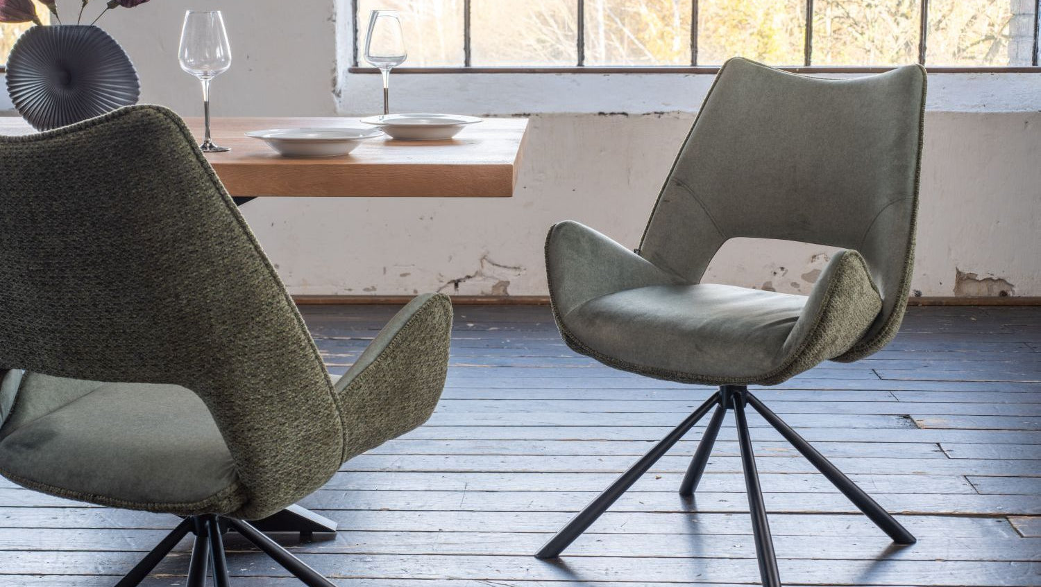KAWOLA Esszimmerstuhl VELO Drehstuhl Stoff graugrün