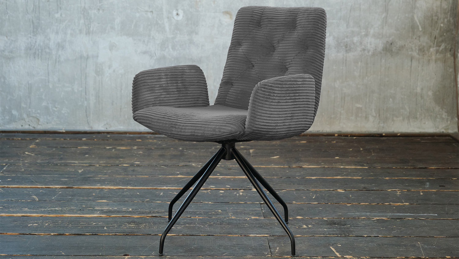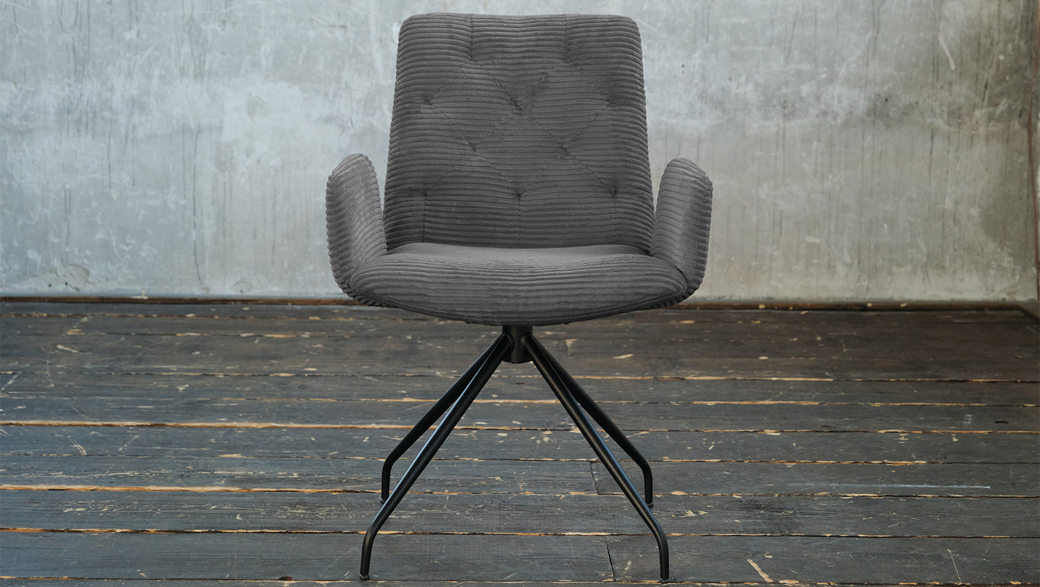 KAWOLA Stuhl NEW CHARME Drehstuhl Esszimmersessel Cord grau