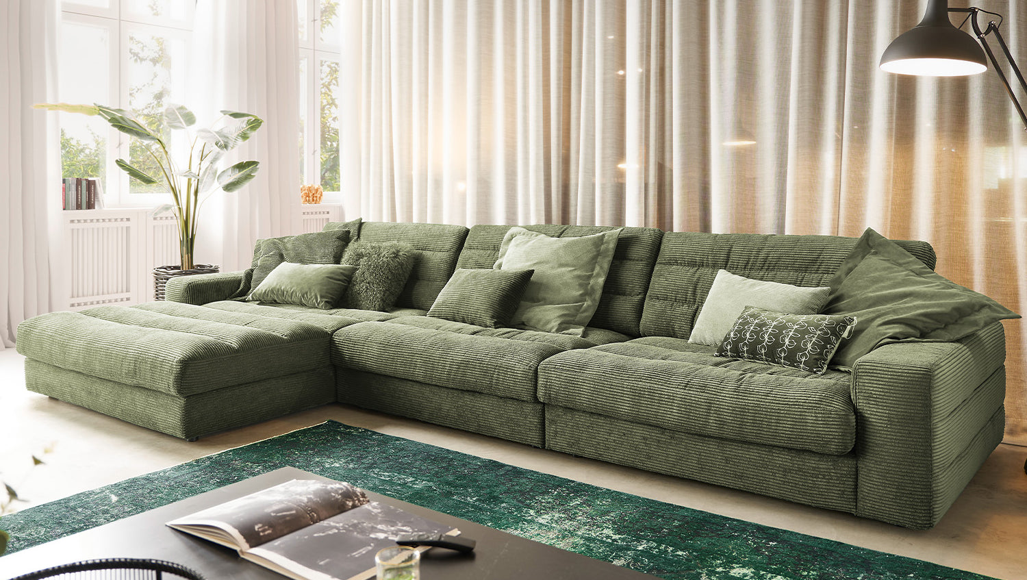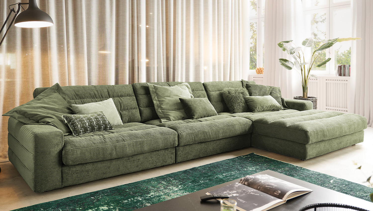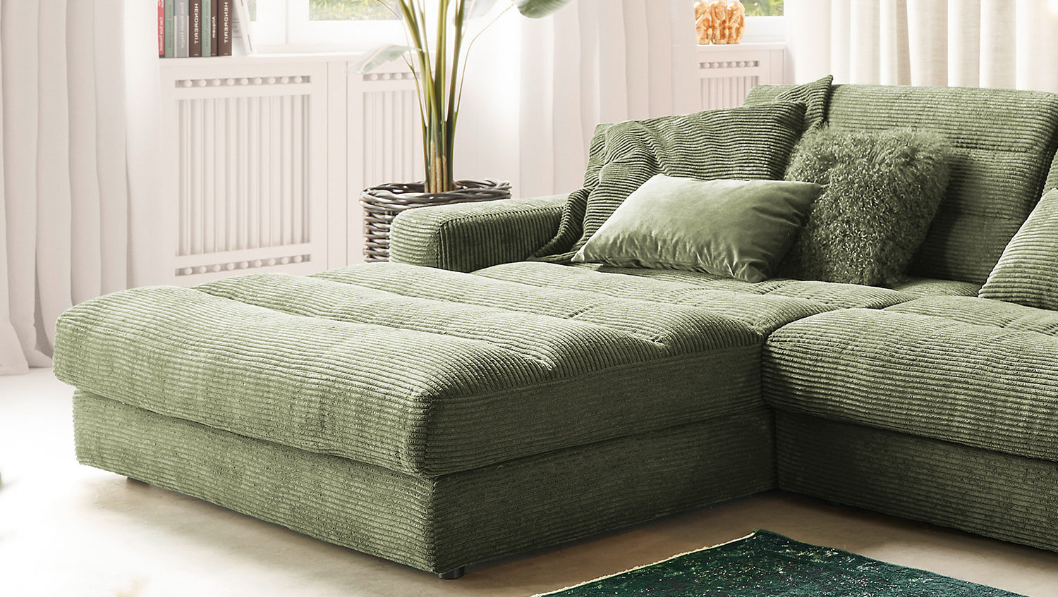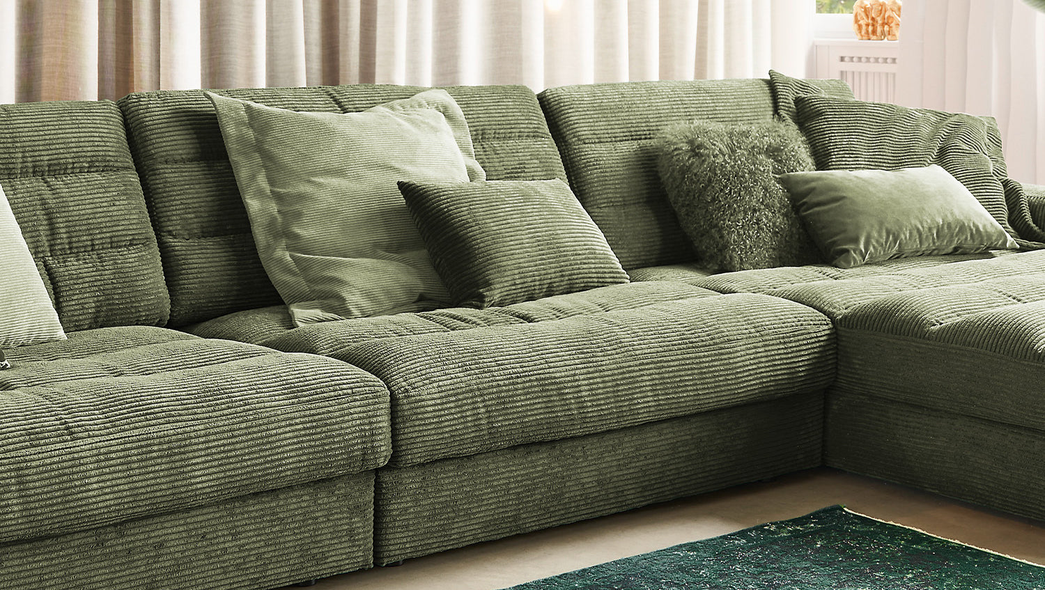 KAWOLA Sofa LANA XL Ecksofa Cord olivgrün