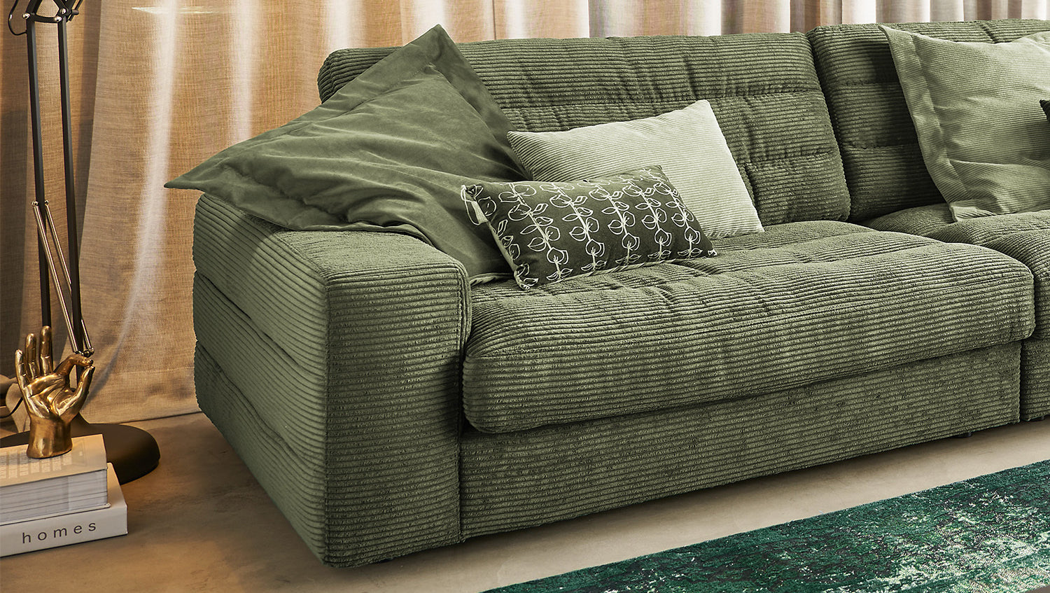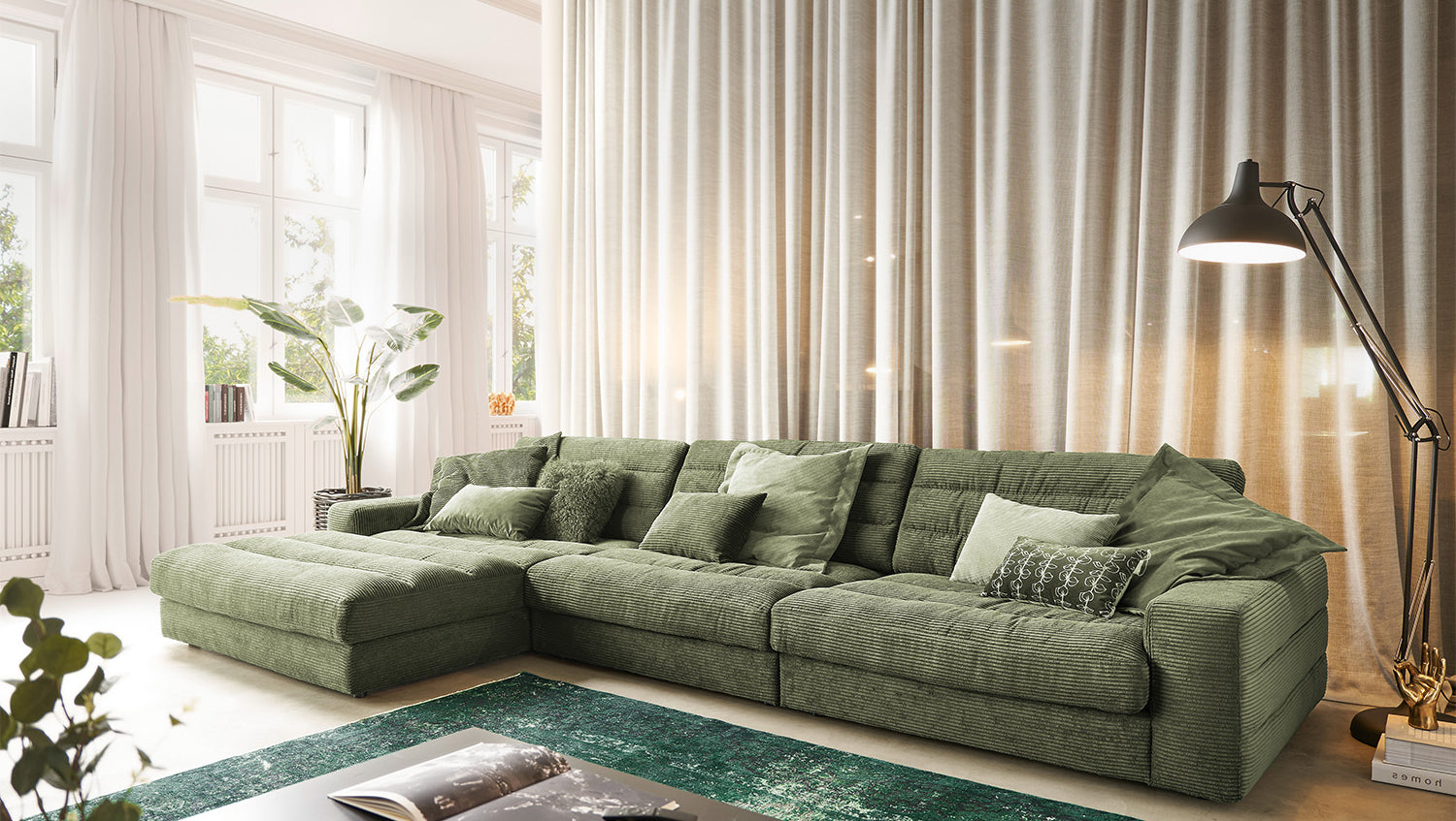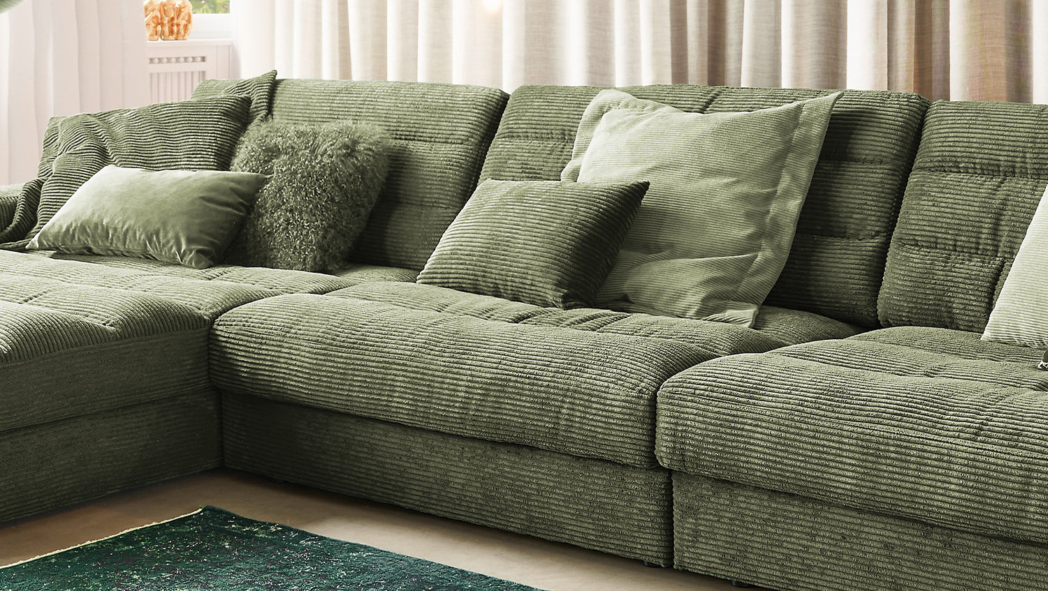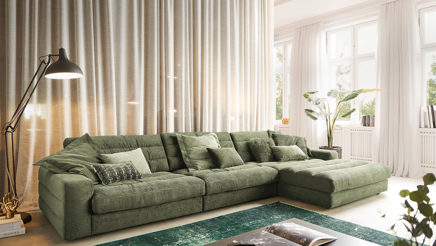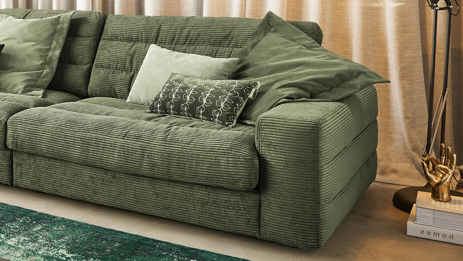 KAWOLA Sofa LANA XL Ecksofa Cord olivgrün