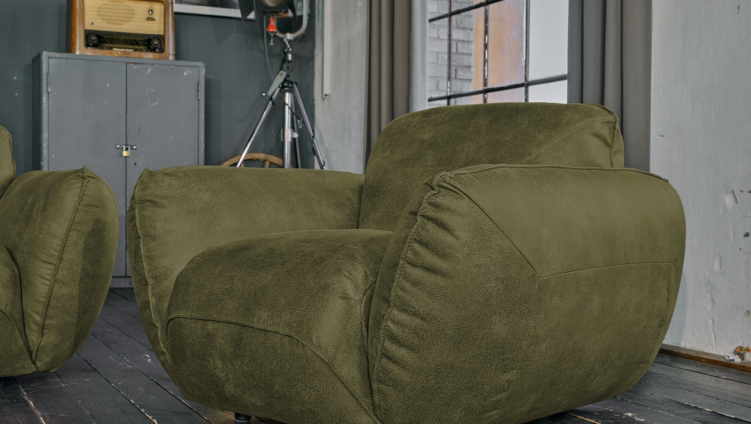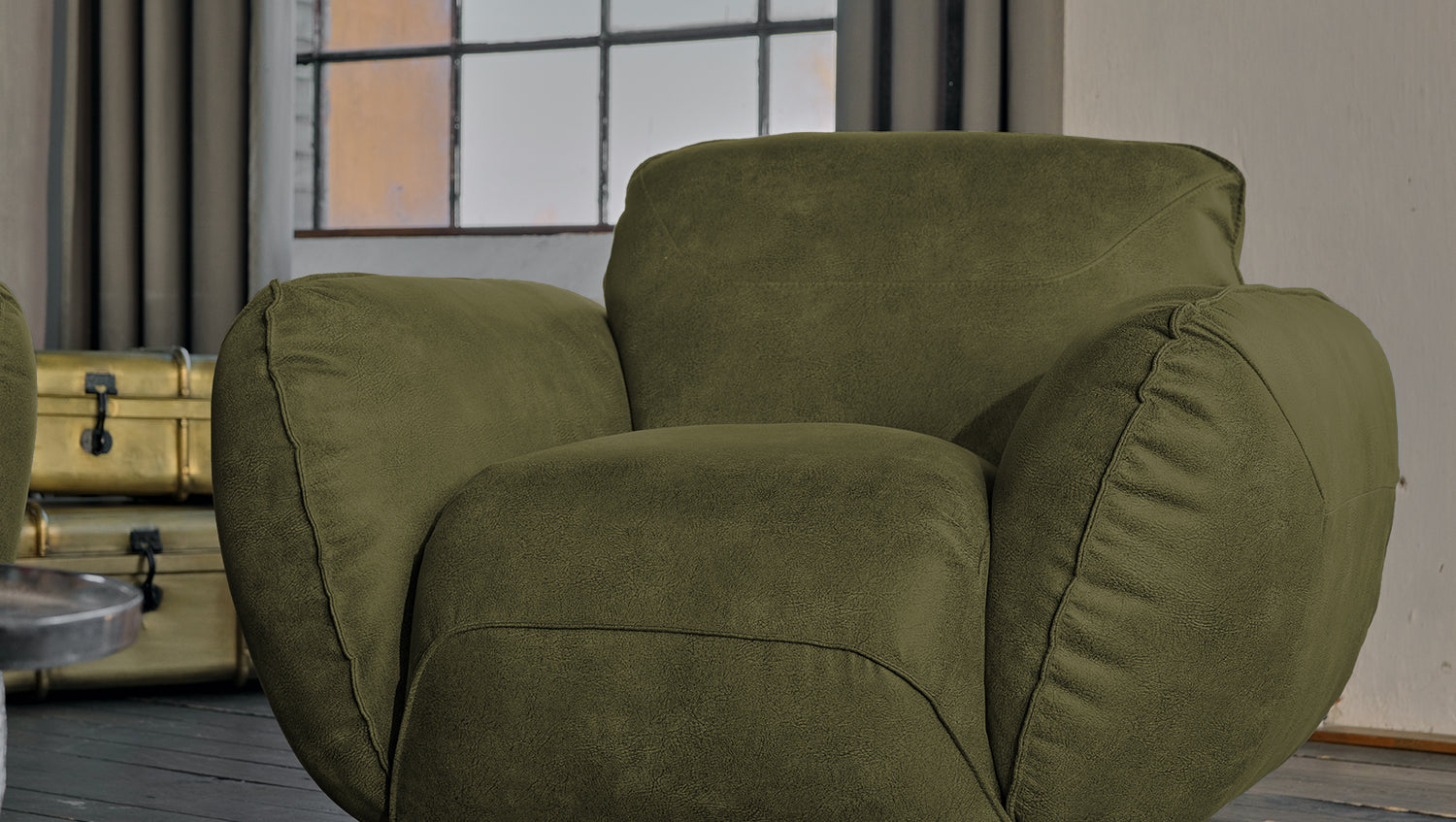 KAWOLA Sessel DAVITO Lederimitat im Vintagelook olivgrün