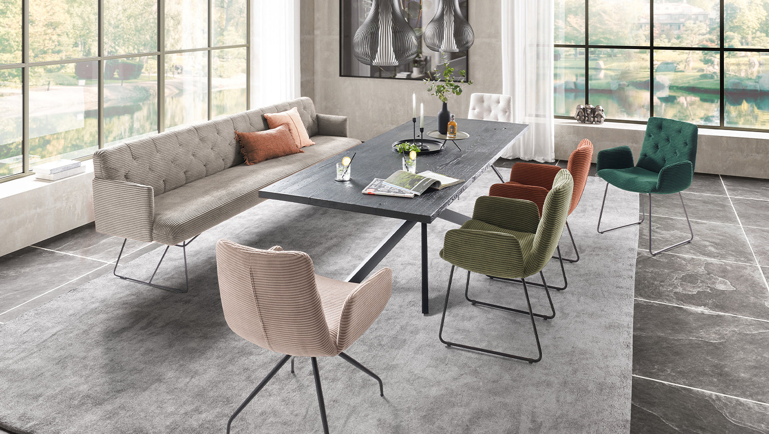 KAWOLA Esszimmerbank CHARME Cord steingrau