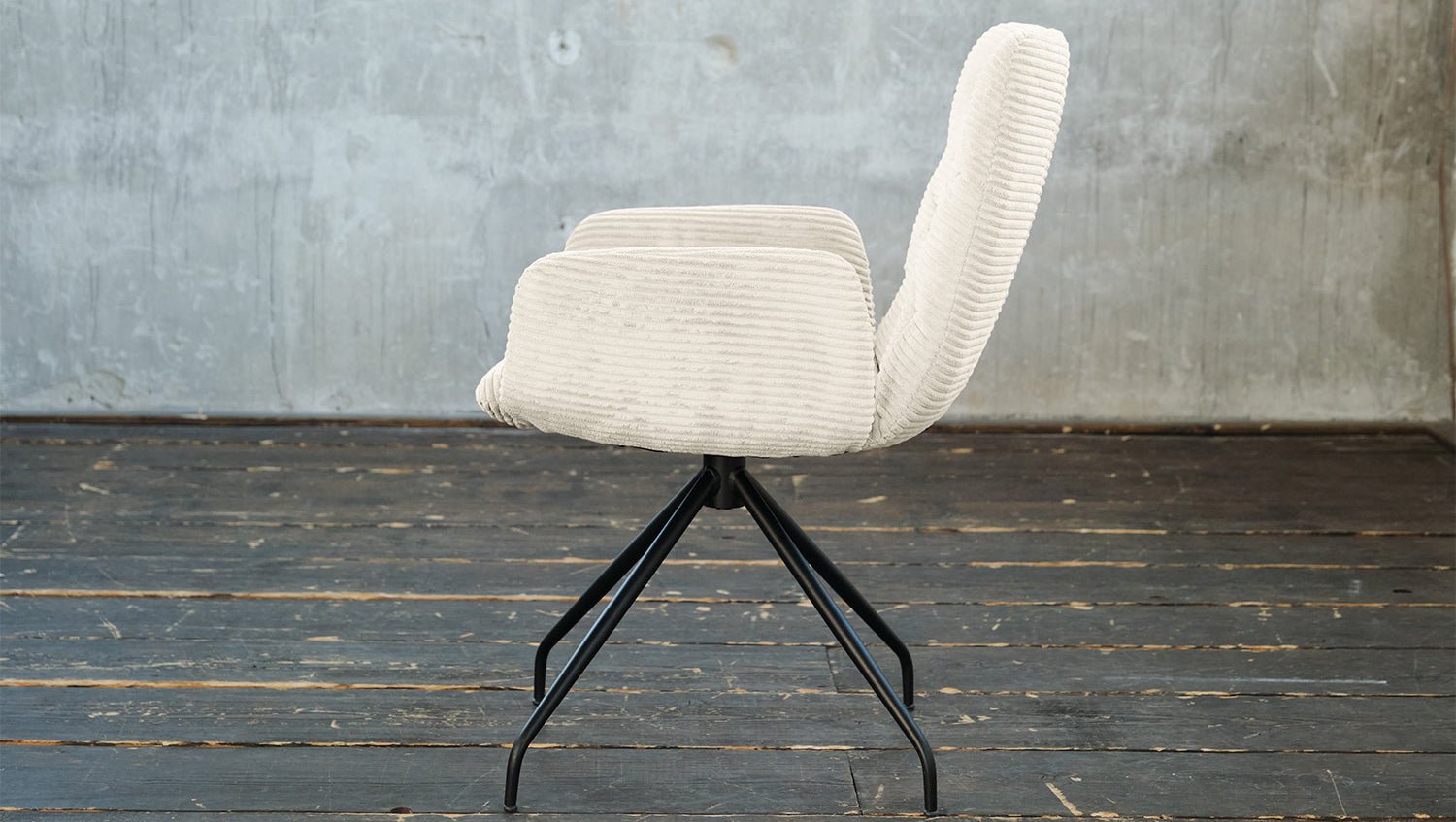 KAWOLA Stuhl NEW CHARME Drehstuhl Esszimmersessel Cord cremeweiß