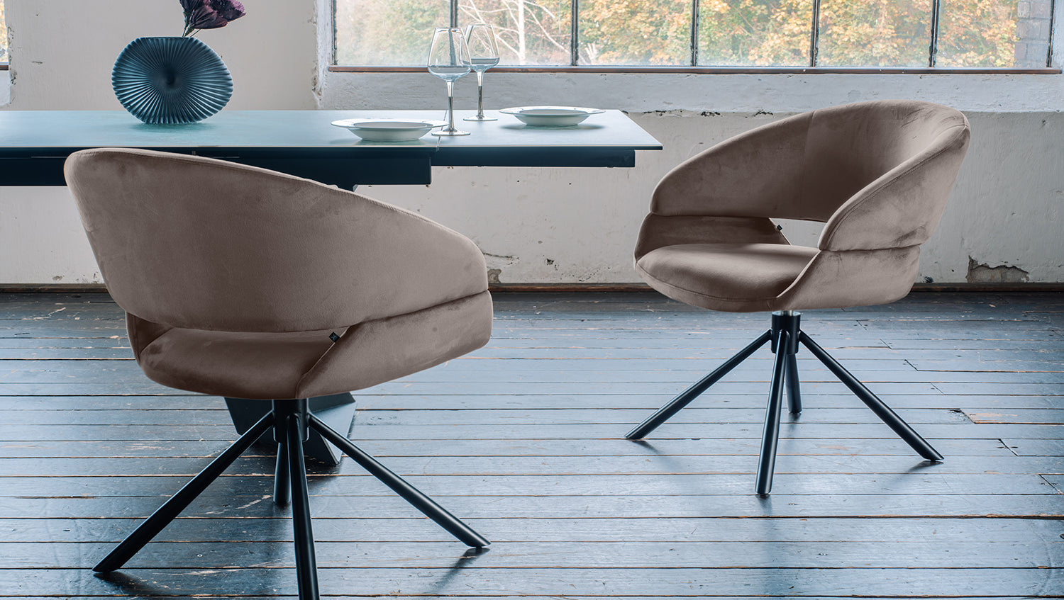 Der KAWOLA Esszimmerstuhl LARA bietet luxuriösen Sitzkomfort in einem modernen Design und ist die perfekte Ergänzung für stilvolle Essbereiche. Mit einer Breite von 61 cm, einer Tiefe von 62 cm und einer Höhe von 82 cm passt der samtbezogene Stuhl ideal in jeden Raum und verleiht ihm ein elegantes Ambiente. Die Sitzhöhe beträgt 48 cm, die Sitztiefe 49 cm und die Sitzbreite 44 cm – optimal für gemütliches Sitzen. Das 360° drehbare Gestell mit praktischer Auto-Return-Funktion bringt den Stuhl automatisch in die Ausgangsposition zurück und ermöglicht so flexible Beweglichkeit am Tisch. Das pulverbeschichtete Drehgestell aus schwarzem Eisen sorgt für Stabilität und verleiht dem Stuhl eine moderne Note. Die bequemen Armlehnen und der hochwertige Velvet-Bezug machen diesen Stuhl zum perfekten Mix aus Komfort und Stil. Der LARA Esszimmerstuhl ist die ideale Wahl für alle, die Funktionalität und edles Design kombinieren möchten.
