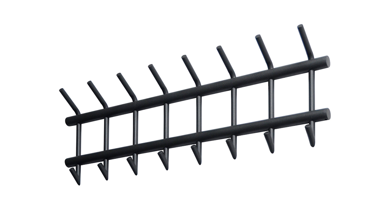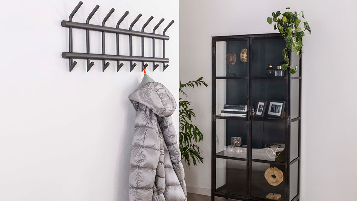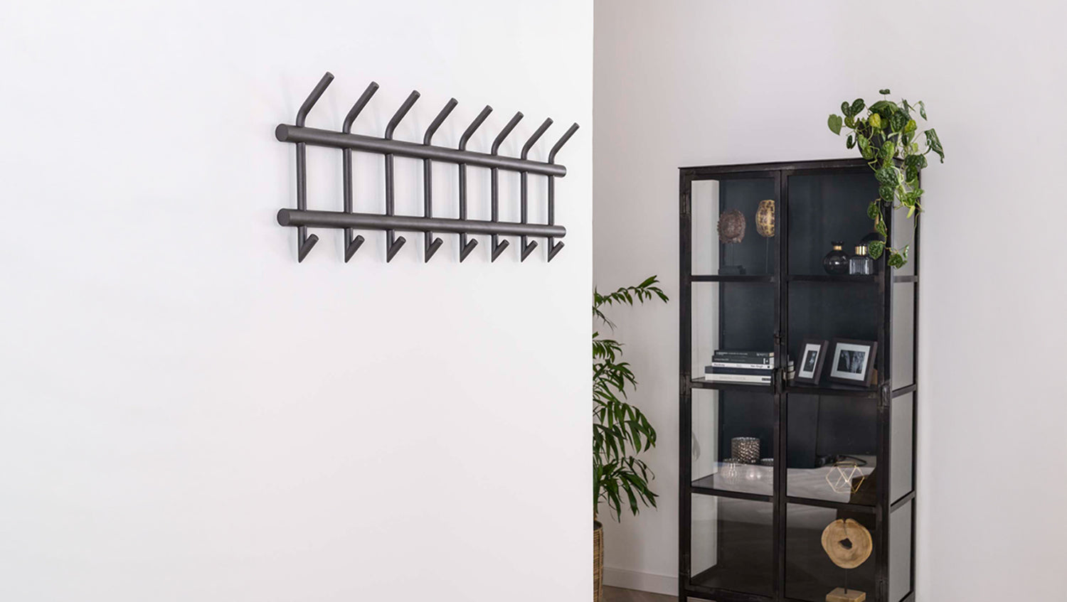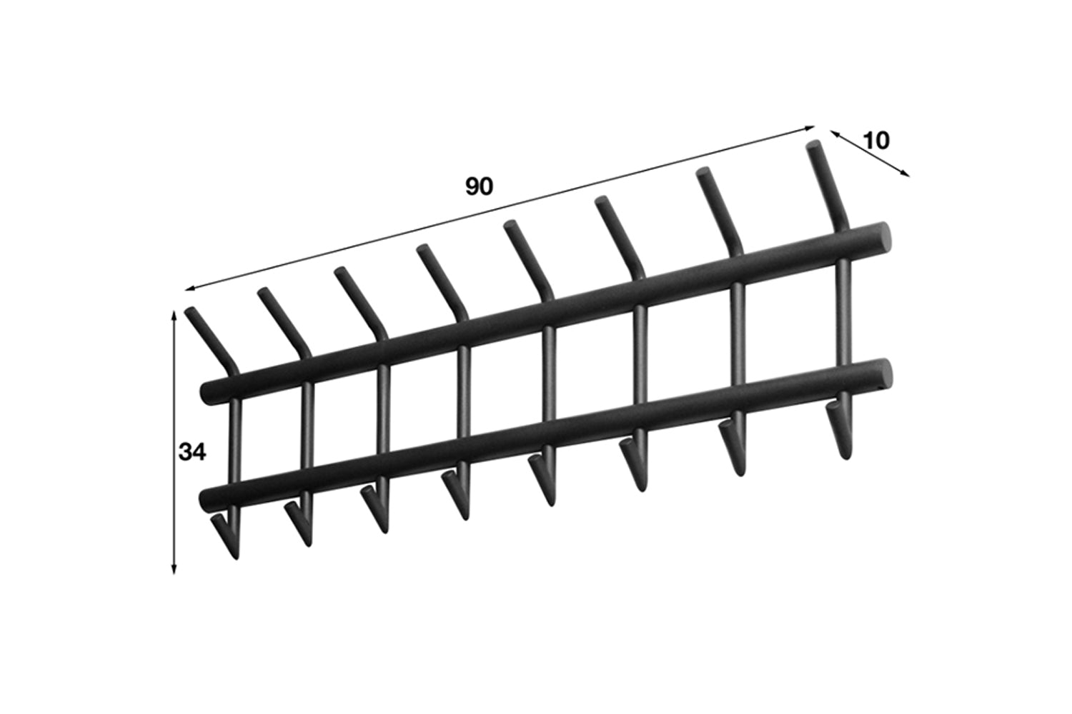 Die Wandgarderobe FABIA von KAWOLA überzeugt durch ihr schlichtes, modernes Design. Das runde Rohr aus dunkelgrauem, matt pulverbeschichtetem Stahl sorgt für eine robuste und stilvolle Optik. Mit 8 geschweißten Haken, die sowohl oben als auch unten Platz für Jacken, Taschen und Accessoires bieten, vereint dieses Modell Funktionalität und Design auf elegante Weise. Die stabile Garderobe wird montiert geliefert und lässt sich dank 2 Aufhängelöchern einfach an der Wand befestigen. Mit einer Breite von 90 cm, einer Höhe von 34 cm und einer Tiefe von 10 cm ist FABIA die ideale Lösung für einen modernen Flur oder Eingangsbereich.