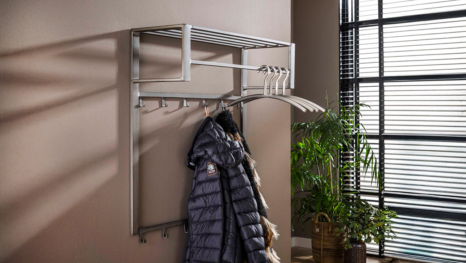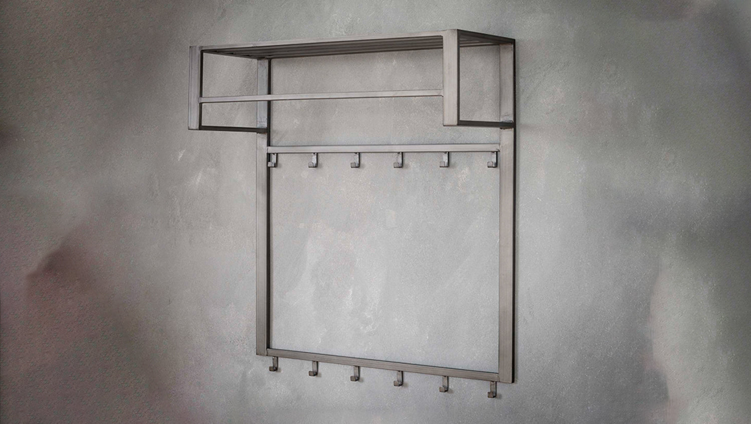 KAWOLA Garderobe LEONOR Metall Hutablage 12 Haken grau
