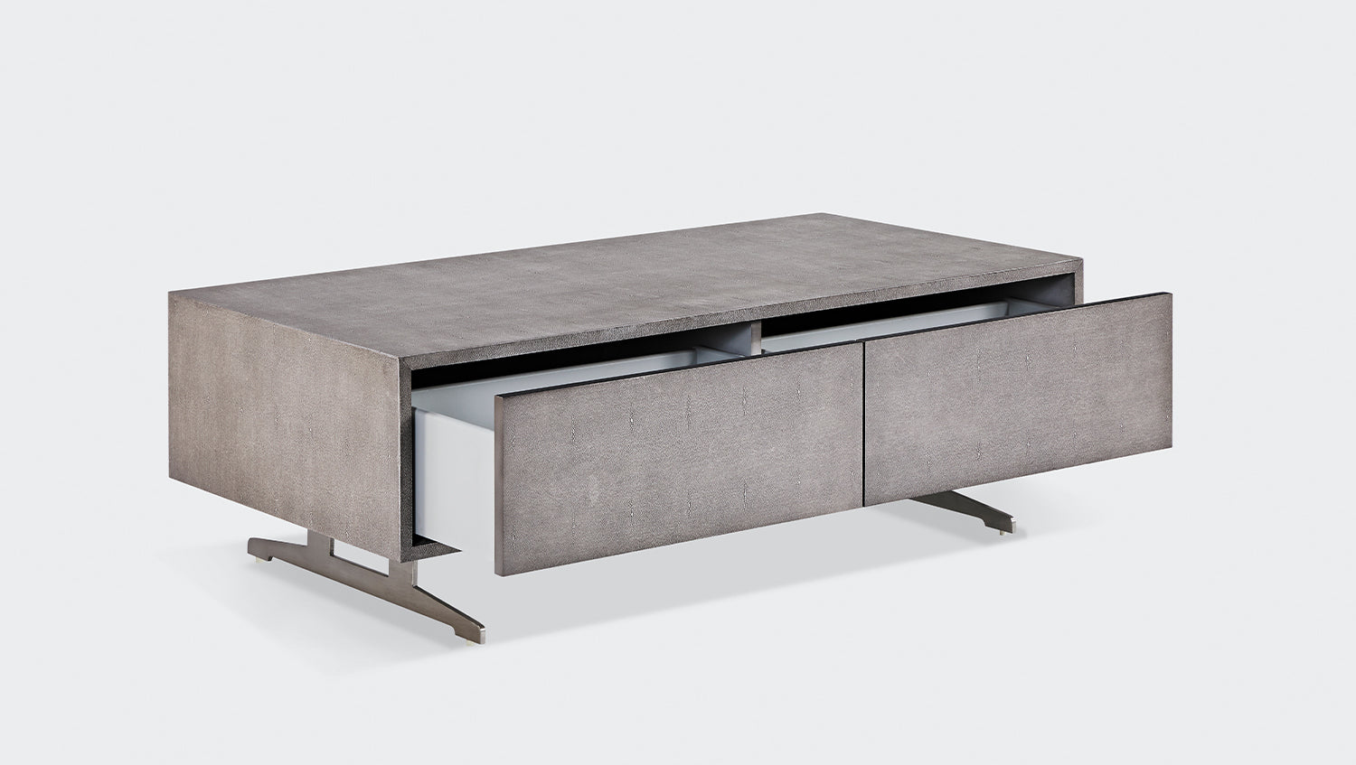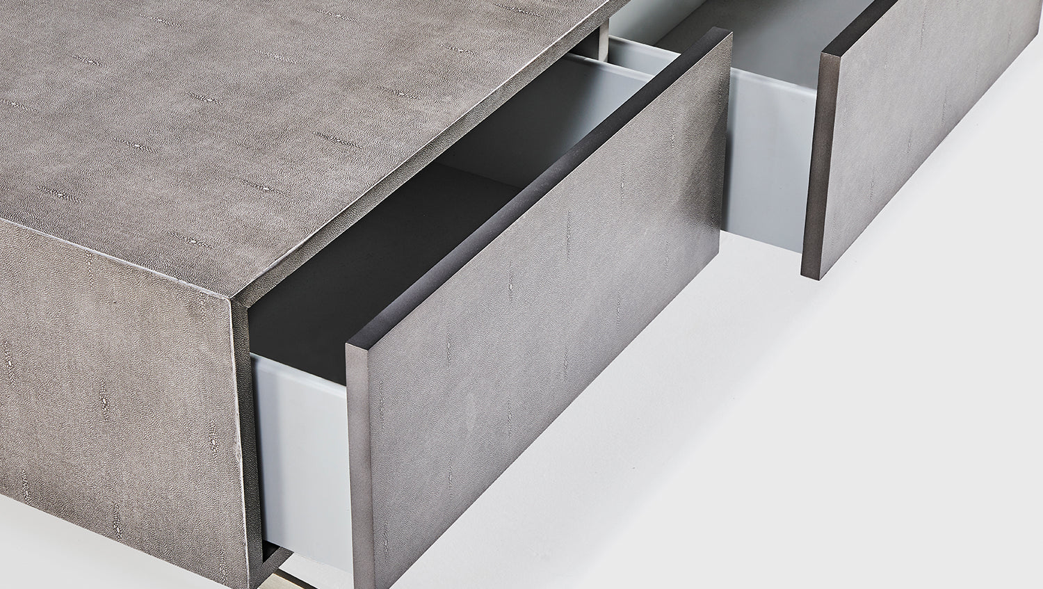 Das KAWOLA Lowboard GALA besticht durch seine elegante Kombination aus modernem Design und praktischer Funktionalität. Es eignet sich auch ideal als Couchtisch oder Beistelltisch. Der Korpus und die Schubladen sind stilvoll mit hochwertigem grauen Kunstleder bezogen, das dem Möbelstück eine luxuriöse Optik verleiht. Die zwei Schubladen bieten großzügigen Stauraum und lassen sich dank des komfortablen Push-to-Open-Mechanismus mühelos öffnen. Die silberfarbenen Kufenfüße aus gebürstetem Edelstahl sorgen für einen modernen, zeitlosen Look und bieten gleichzeitig stabile Standfestigkeit. Das Lowboard GALA von KAWOLA fügt sich perfekt in jedes Wohnambiente ein und ist ideal für Liebhaber von schlichten, aber dennoch eleganten Möbelstücken. Entdecken Sie die perfekte Kombination aus Design und Funktionalität mit dem Lowboard GALA!